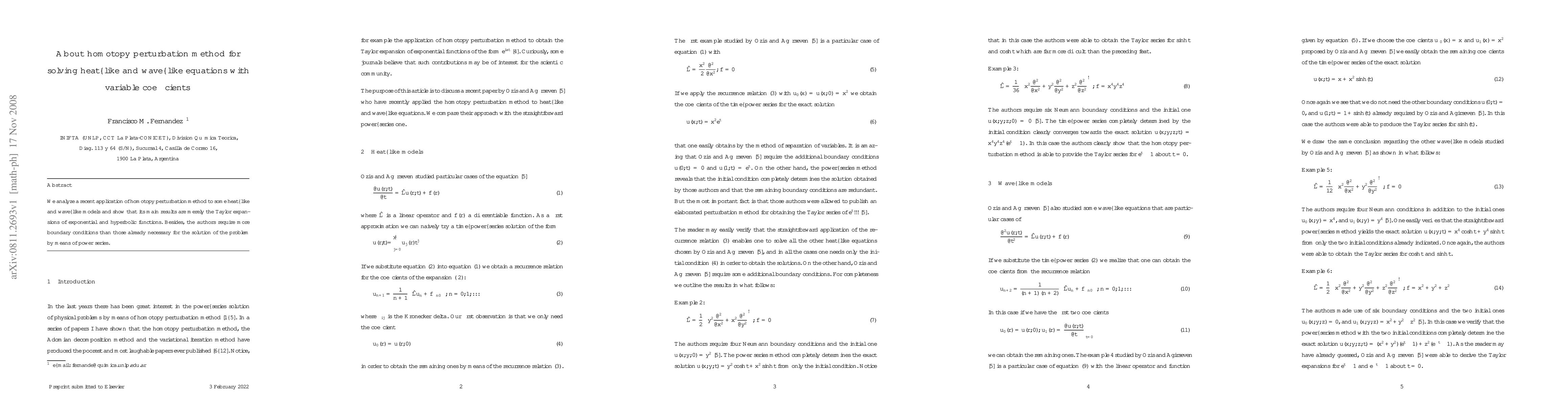 We analyze a recent application of homotopy perturbation method to some heat-like and wave-like models and show that its main results are merely the Taylor expansions of exponential and hyperbolic functions. Besides, the authors require more boundary conditions than those already necessary for the solution of the problem by means of power series.