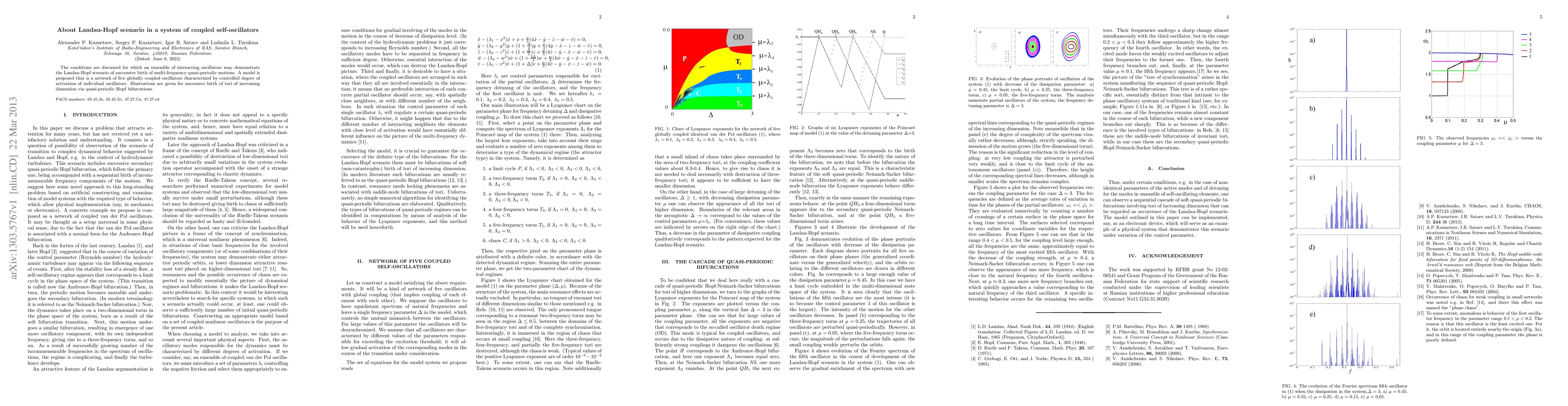 The paper explores conditions for the emergence of multi-frequency quasi-periodic motions in a network of five globally coupled oscillators, proposing a model with controlled activation. It demonstrates the successive birth of higher-dimensional tori through quasi-periodic Hopf bifurcations, illustrating the Landau-Hopf scenario.