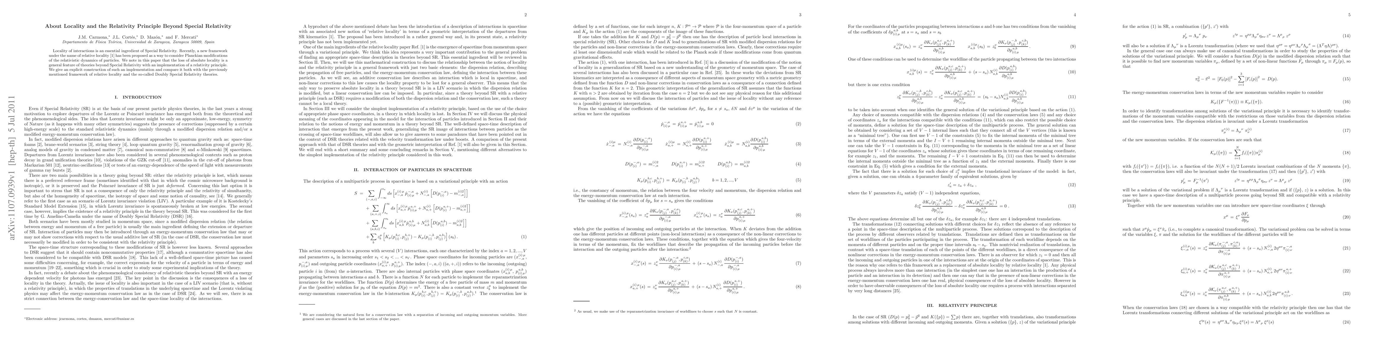 This paper explores how the loss of absolute locality is a common feature in theories extending beyond Special Relativity, proposing a new framework for implementing a relativity principle. It constructs an explicit model and compares it with relative locality and Doubly Special Relativity theories.