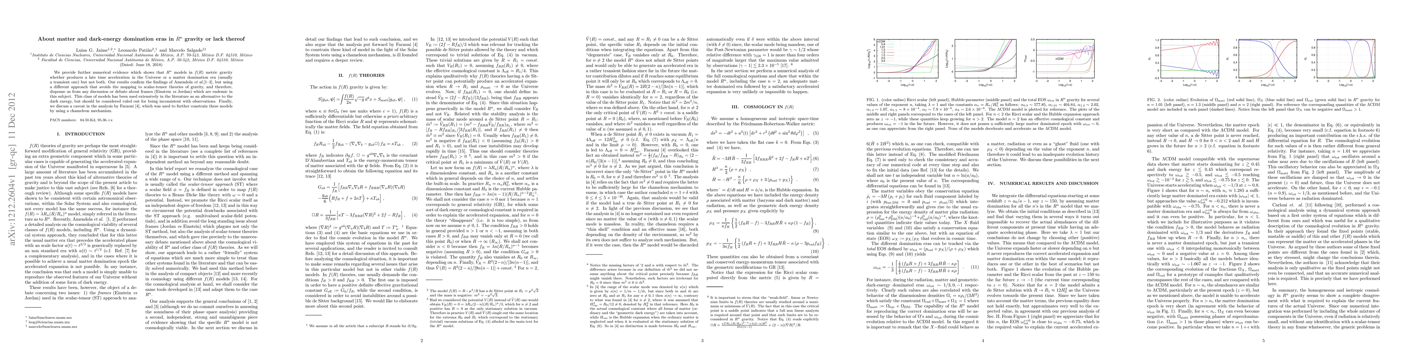 Research paper examines alternative gravity models that either accelerate or dominate with matter, finding a clear distinction between acceleration and domination; the models are inconsistent with observations and should be ruled out.