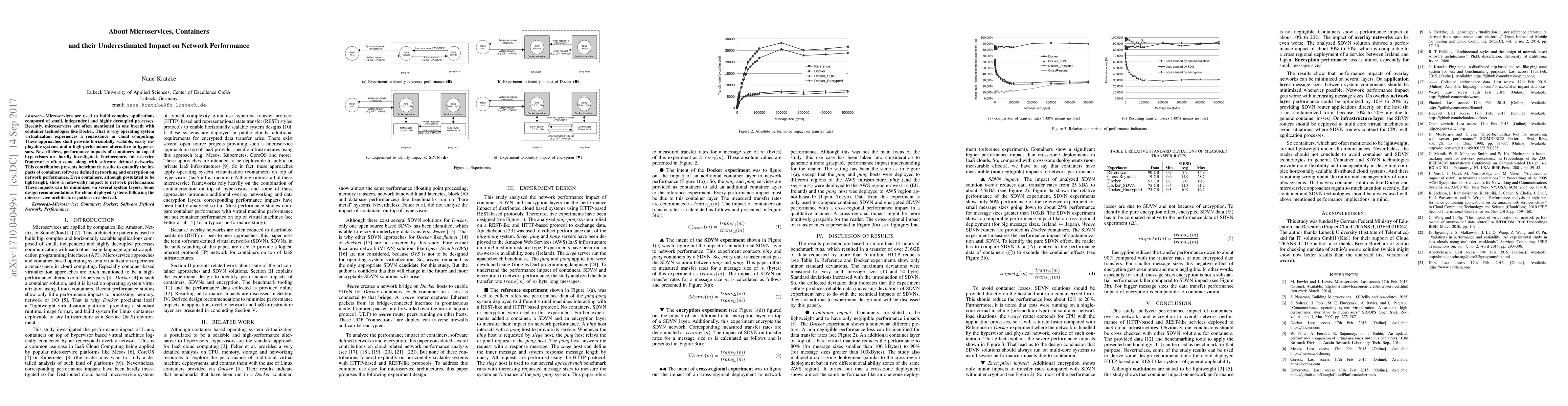 This paper investigates the performance impacts of microservices and container technologies on network performance, revealing that containers, despite being lightweight, can significantly affect network performance. The study provides benchmark results and design recommendations to minimize these impacts in cloud-deployed microservice architectures.