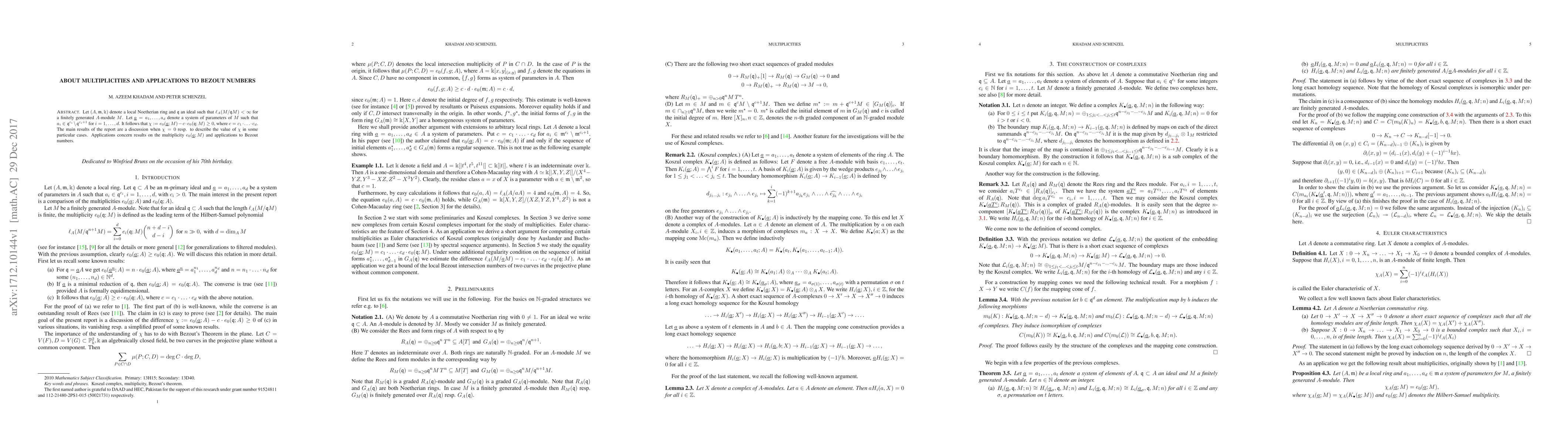 This paper explores multiplicities in local Noetherian rings and their applications to Bezout numbers, focusing on the relationship between a system of parameters and the ideal quotient, and discussing conditions under which certain multiplicity expressions vanish or take specific values.