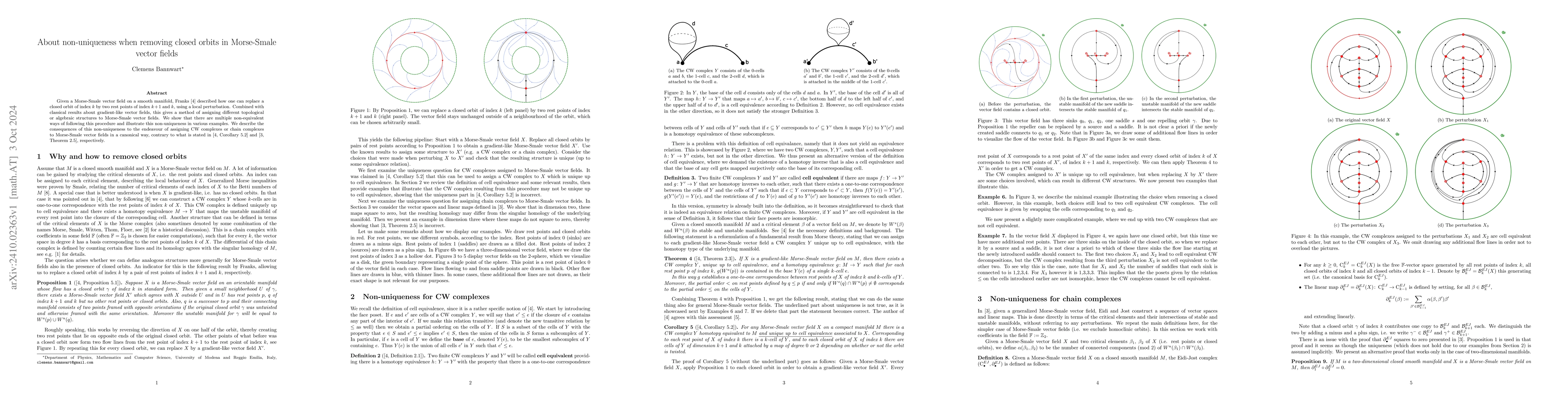 This paper explores the non-uniqueness of modifying Morse-Smale vector fields by removing closed orbits, demonstrating multiple ways to replace a closed orbit with rest points, and discussing the implications for assigning topological structures to these fields. It highlights the challenges in achieving a canonical CW or chain complex assignment due to these variations.