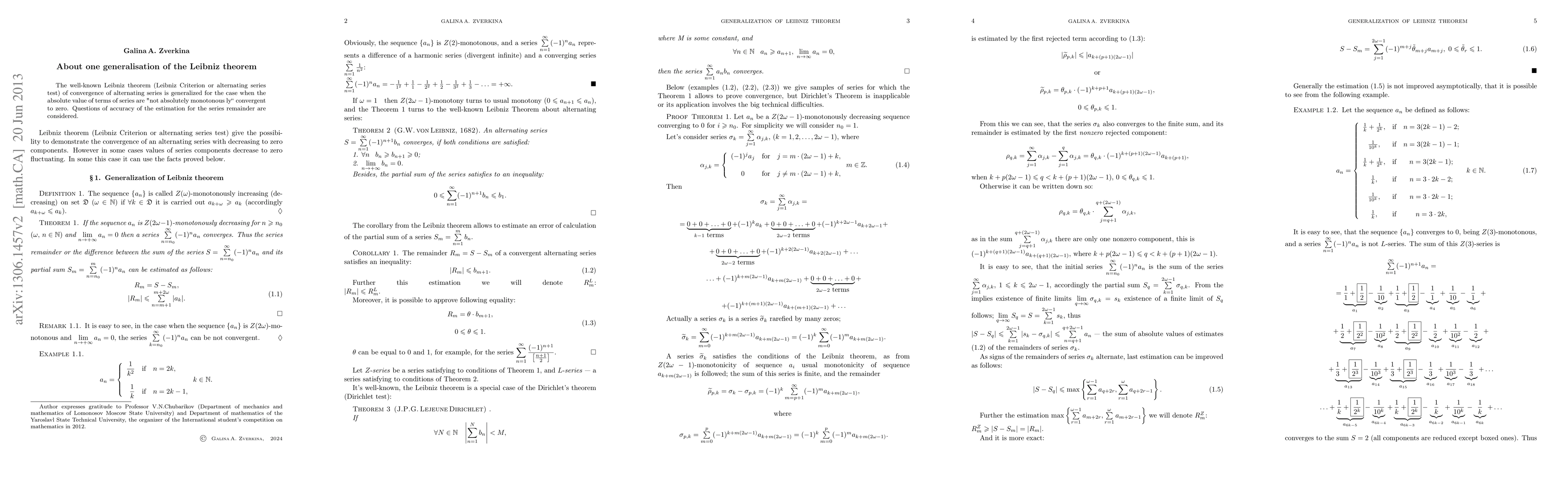 A generalized version of the Leibniz theorem is proposed for series where terms converge to zero in a non-monotonic manner, addressing the accuracy of series remainder estimation.