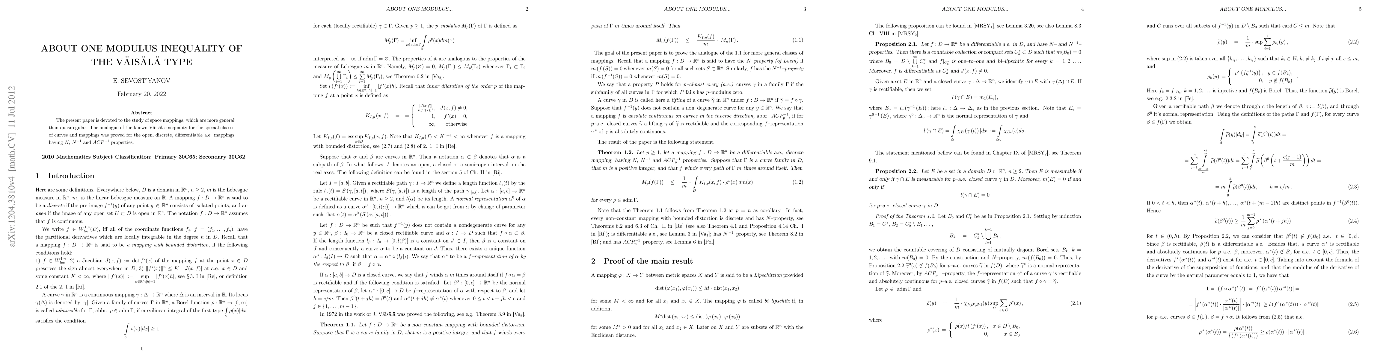 This paper explores a generalized form of the V"ais"al"a inequality for specific curve types, extending it to open, discrete, differentiable almost everywhere mappings with N, N^(-1), and ACP^(-1) properties.