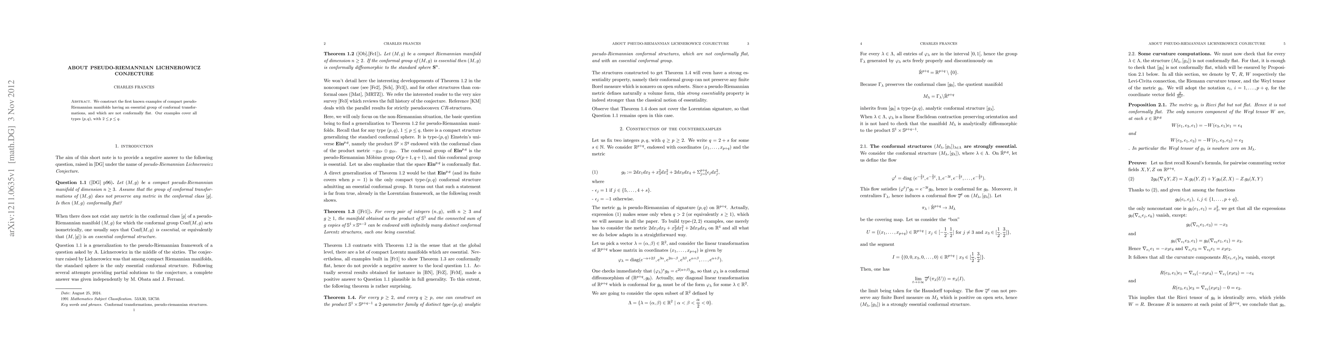 This paper presents the first examples of compact pseudo-Riemannian manifolds with a significant group of conformal transformations that are not conformally flat, covering all types $(p,q)$ where $2 \leq p \leq q$. These findings challenge the pseudo-Riemannian Lichnerowicz conjecture.