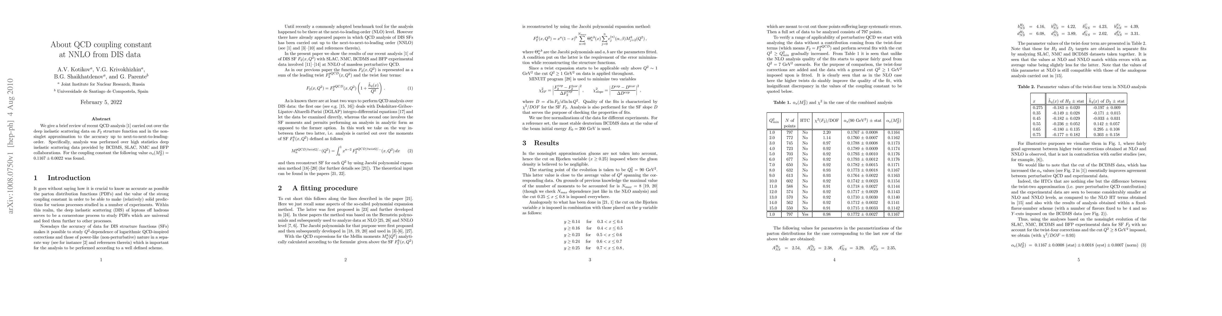 We give a brief review of our recent QCD analysis carried out over the deep inelastic scattering data on F2 structure function and in the non-singlet approximation to the accuracy up to next-to-next-to-leading-order. Specifically, analysis was performed over high statistics deep inelastic scattering data provided by BCDMS, SLAC, NMC and BFP collaborations. For the coupling constant the following value alpha_s(M_Z^2) = 0.1167 \pm 0.0022 was found.