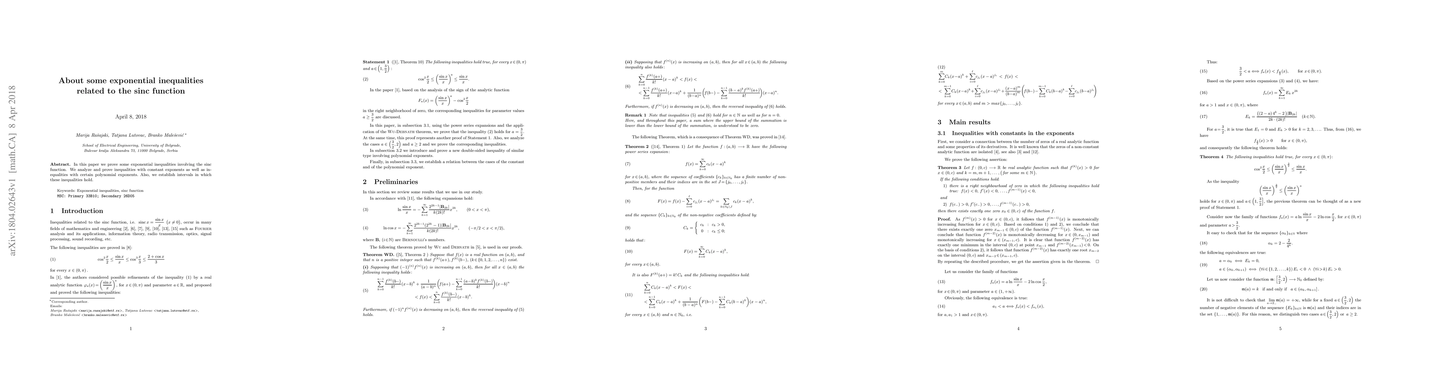 In this paper we prove some exponential inequalities involving the sinc function. We analyze and prove inequalities with constant exponents as well as inequalities with certain polynomial exponents. Also, we establish intervals in which these inequalities hold.