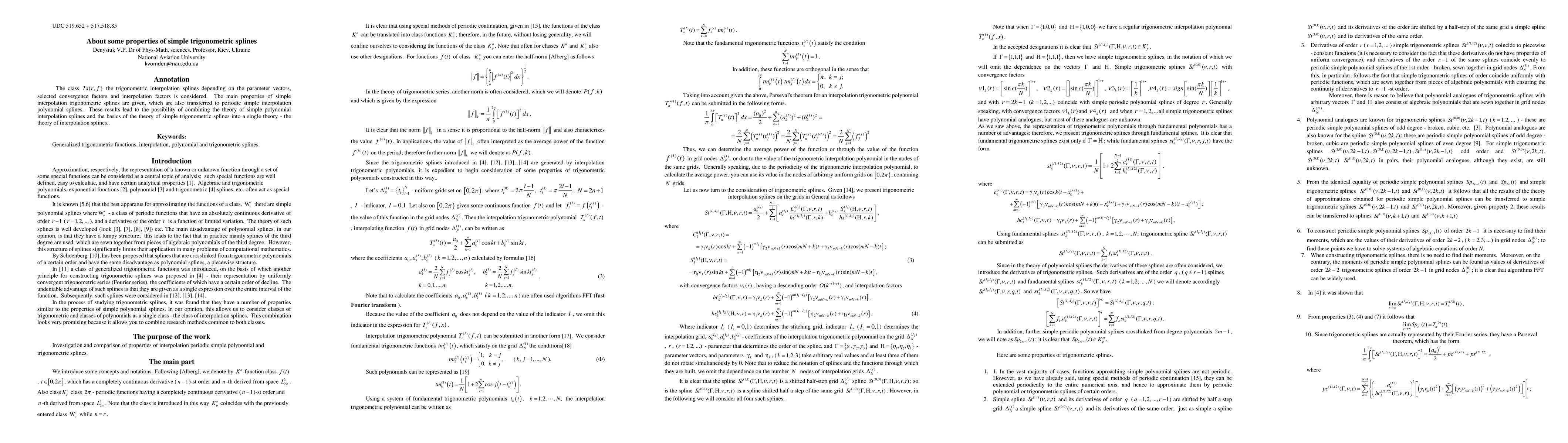 This paper investigates the properties of simple trigonometric interpolation splines $Ts(r,f)$, focusing on their convergence and interpolation factors. It merges the theory of simple polynomial interpolation splines with trigonometric splines, establishing a unified theory of interpolation splines.