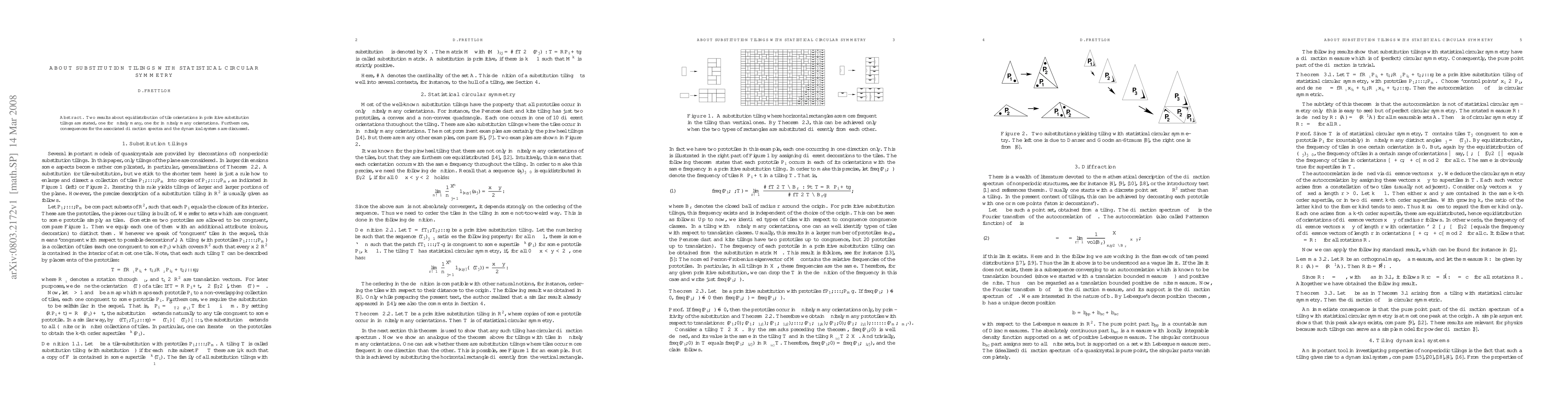 Two results about equidistribution of tile orientations in primitive substitution tilings are stated, one for finitely many, one for infinitely many orientations. Furthermore, consequences for the associated diffraction spectra and the dynamical systems are discussed.
