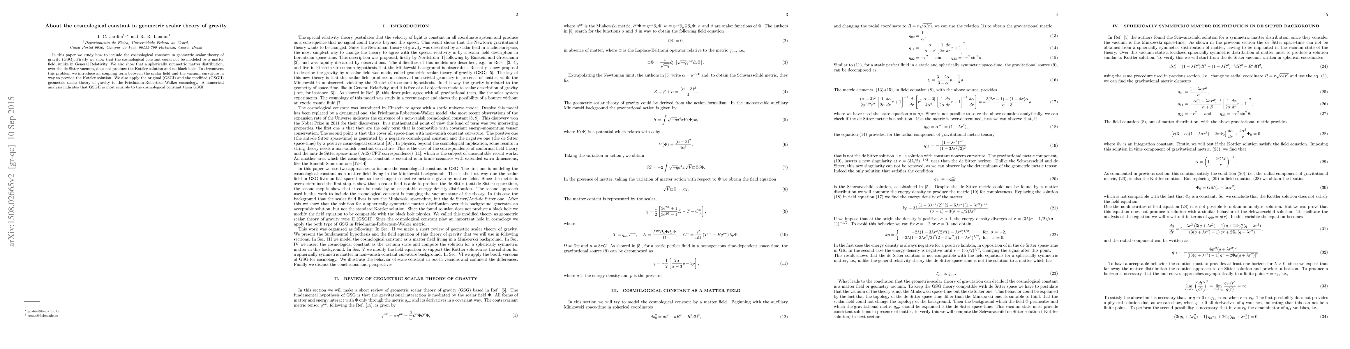 In this paper we study how to include the cosmological constant in geometric scalar theory of gravity (GSG). Firstly we show that the cosmological constant could not be modeled by a matter field, unlike in General Relativity. We also show that a spherically symmetric matter distribution, over the de Sitter vacuum, does not produce the Kottler solution and no black hole. To circumvent this problem we introduce an coupling term between the scalar field and the vacuum curvature in way to provide the Kottler solution. We also apply the original (GSGI) and the modified (GSGII) geometric scalar theory of gravity to the Friedmann-Robertson-Walker cosmology. A numerical analysis indicates that GSGII is most sensible to the cosmological constant them GSGI.