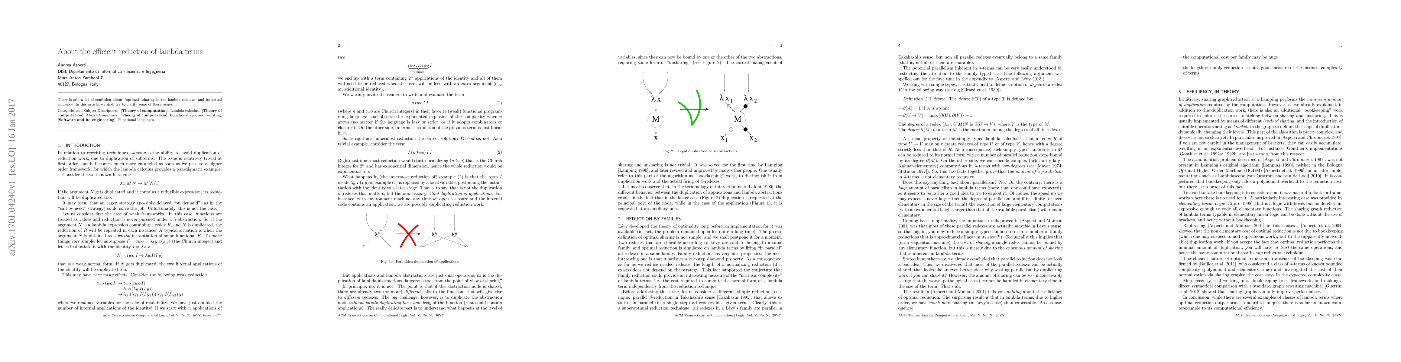 There is still a lot of confusion about "optimal" sharing in the lambda calculus, and its actual efficiency. In this article, we shall try to clarify some of these issues.