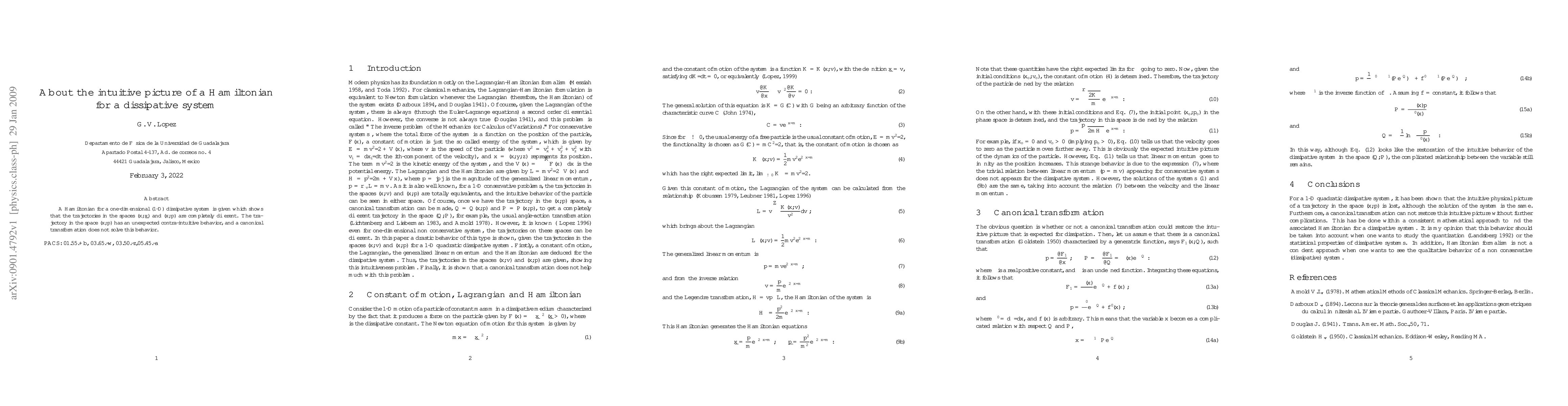A Hamiltonian for a one-dimensional (1-D) dissipative system is given which shows that the trajectories in the spaces ($x,\dot x$) and ($x,p$) are completely different. The trajectory in the space ($x,p$) has an unexpected contra-intuitive behavior, and a canonical transformation does not solve this behavior.