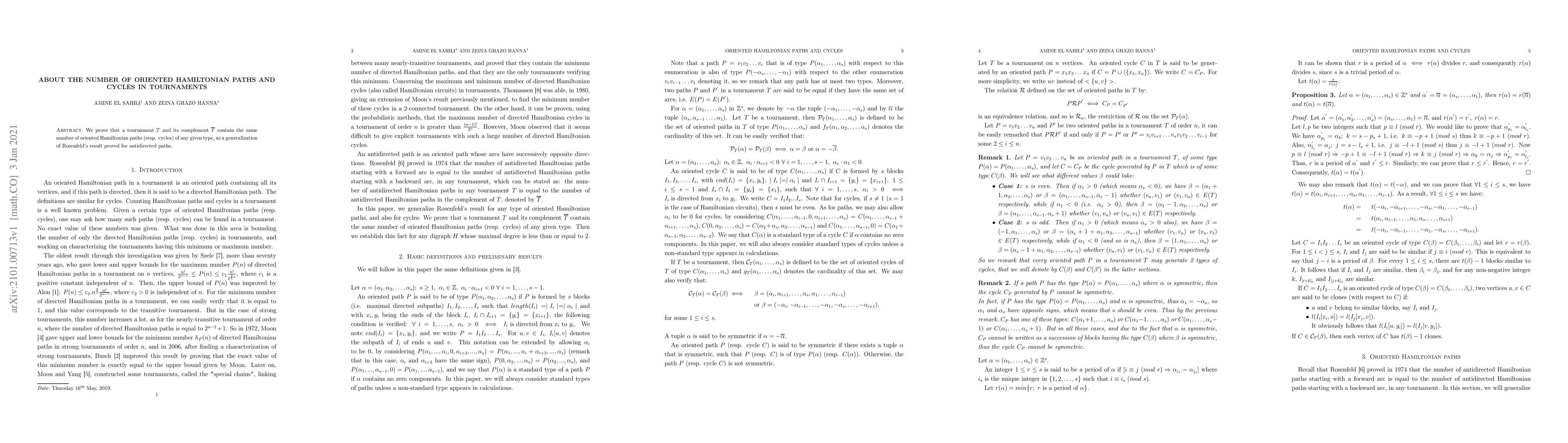 We prove that a tournament and its complement contain the same number of oriented Hamiltonian paths (resp. cycles) of any given type, as a generalization of Rosenfeld's result proved for antidirected paths.