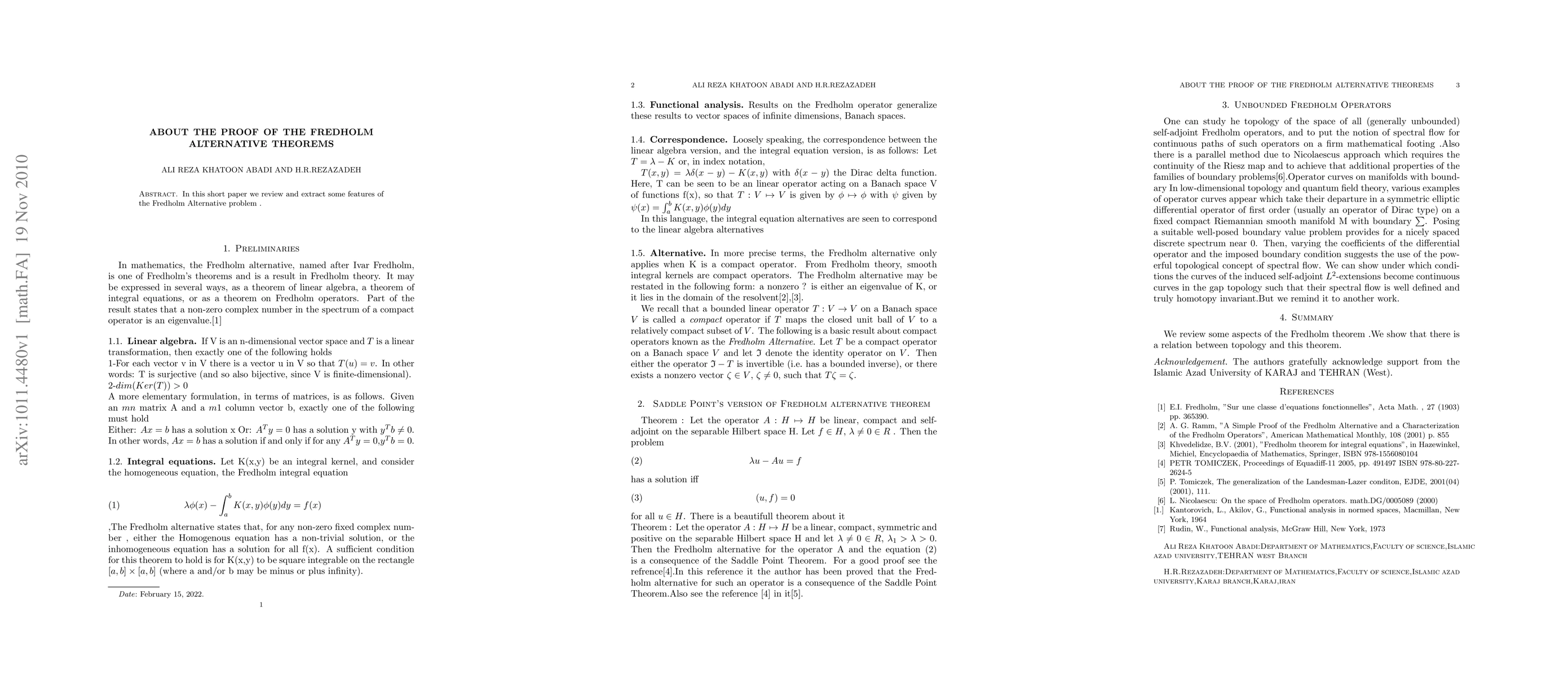 In this short paper we review and extract some features of the Fredholm Alternative problem .