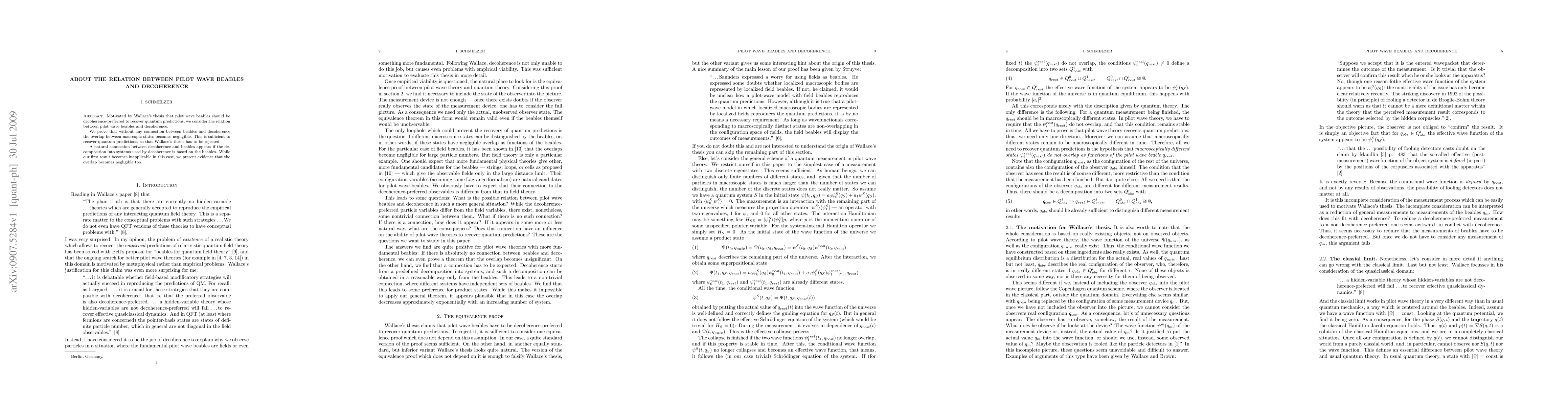 The paper analyzes the relationship between pilot wave beables and decoherence through mathematical proofs and theoretical arguments.