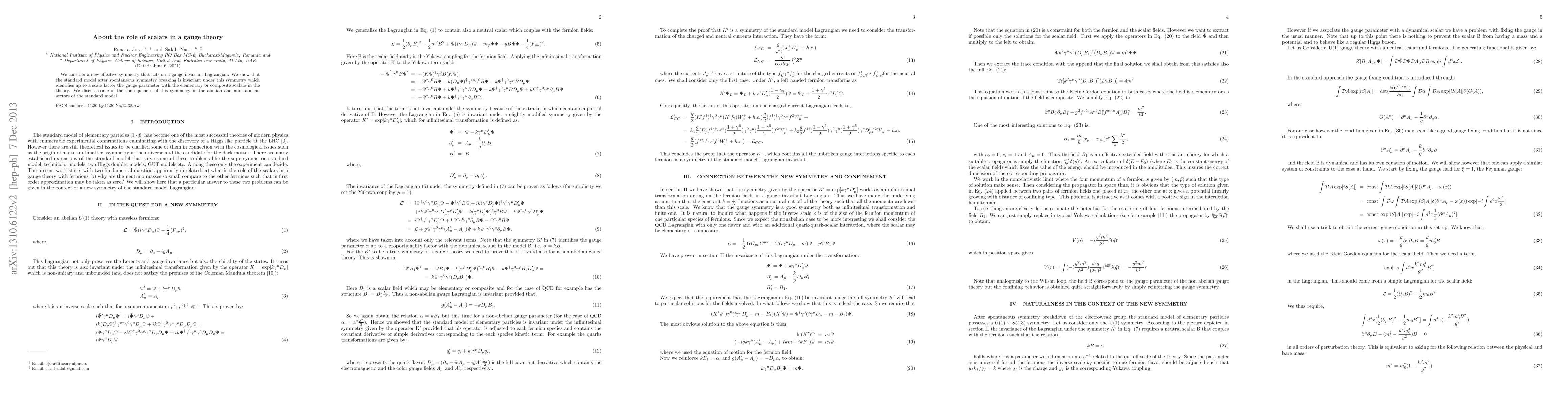 Researchers explore a new symmetry in gauge theories that relates scalars to gauge parameters, with implications for the Standard Model's abelian and non-abelian sectors.