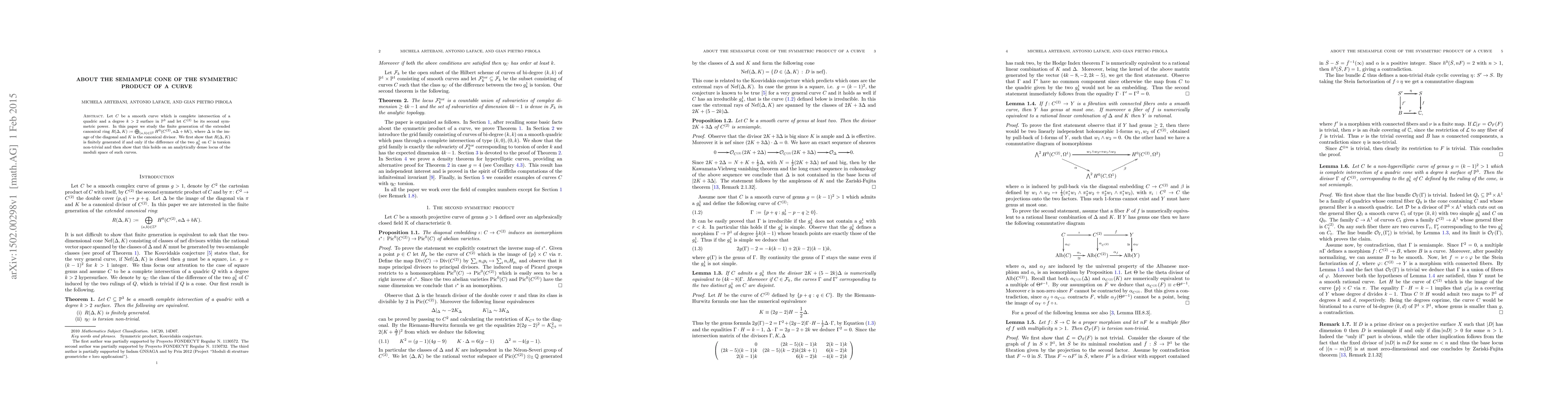 Researchers studied the generation of a ring related to a curve's second symmetric power, finding it is finitely generated when the difference between two specific forms on the curve is torsion non-trivial.