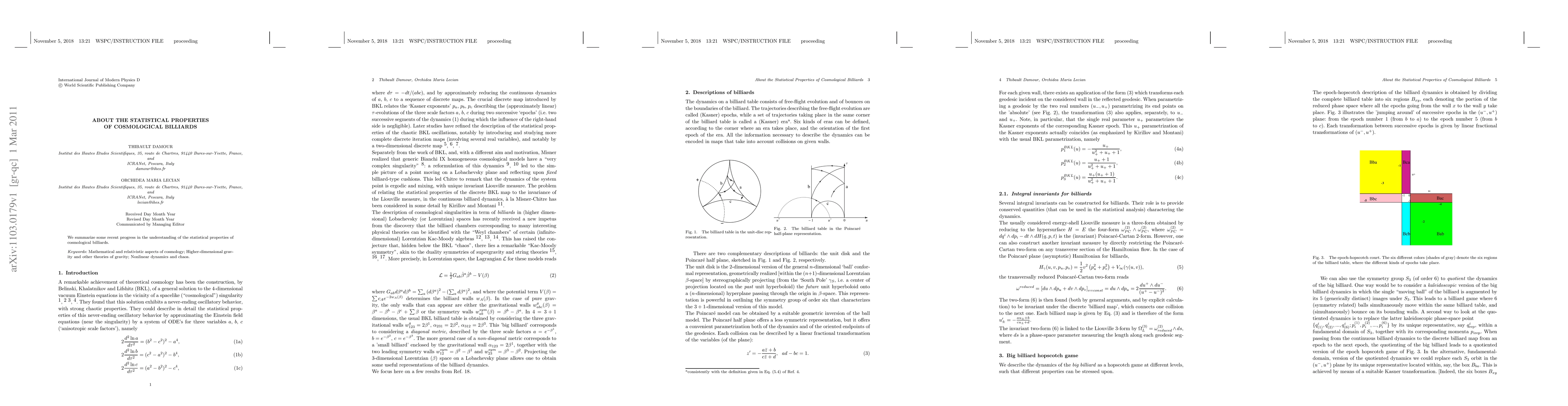 We summarize some recent progress in the understanding of the statistical properties of cosmological billiards.