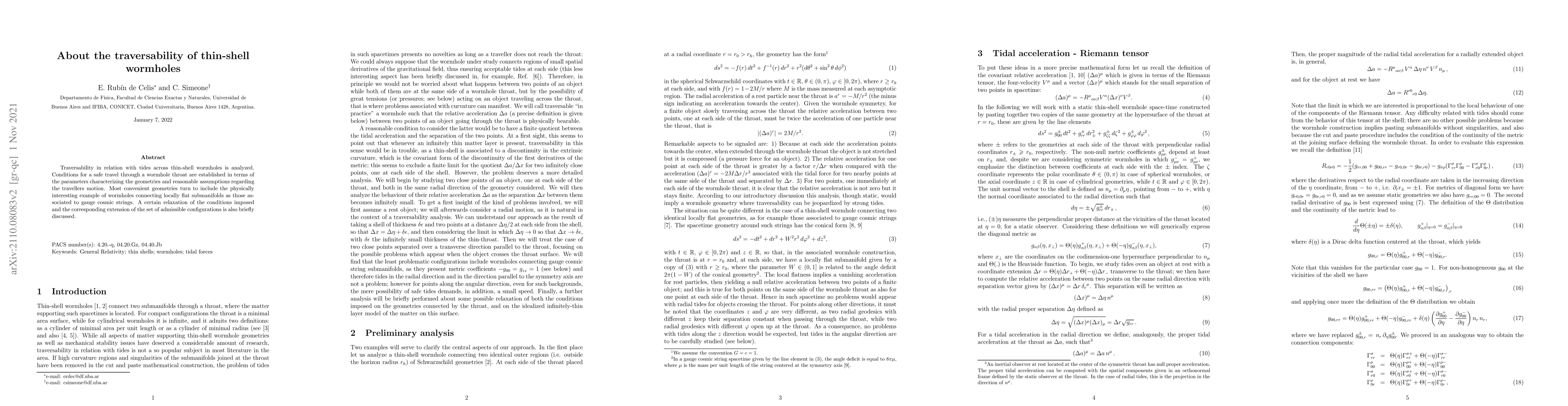 A thorough analysis of traversability in thin-shell wormholes was performed using a combination of general relativity and numerical simulations.