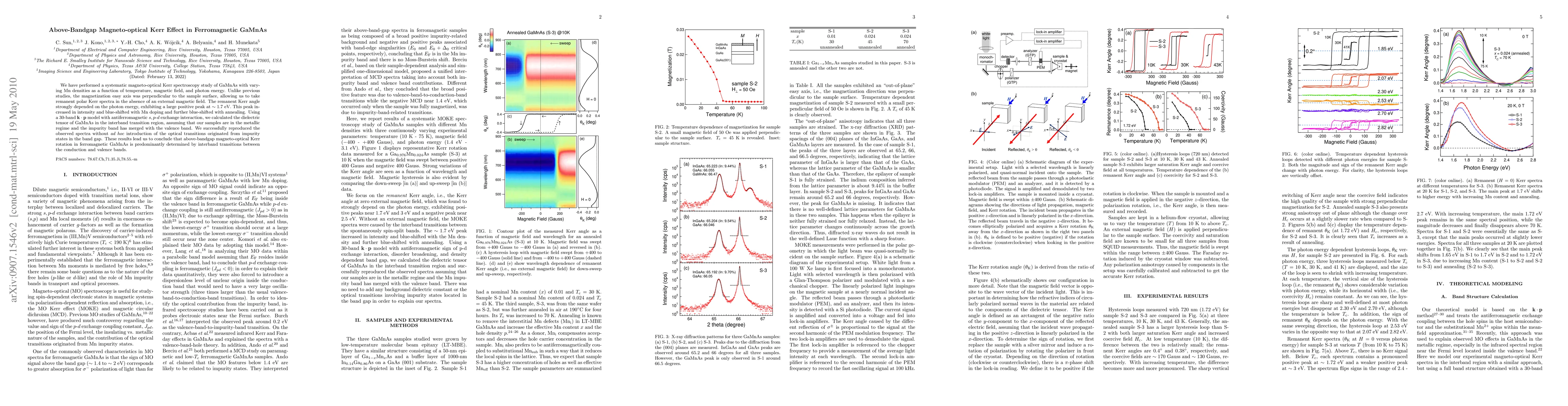 This study investigates the above-bandgap magneto-optical Kerr effect in ferromagnetic GaMnAs, revealing a significant remanent polar Kerr response at around 1.7 eV. Theoretical modeling using a 30-band k·p model supports that interband transitions dominate this Kerr effect, rather than impurity states.