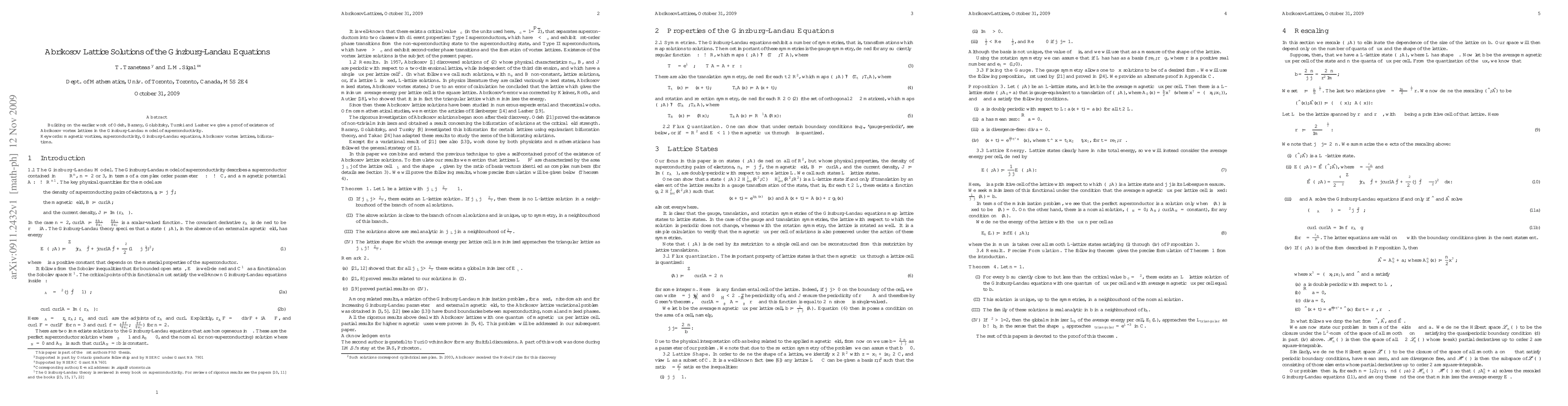 Summary: This research establishes the existence of Abrikosov vortex lattices within the Ginzburg-Landau framework of superconductivity, building on foundational work by Odeh, Barany, Golubitsky, Turski, and Lasher. The study provides a formal proof supporting the theoretical model.
