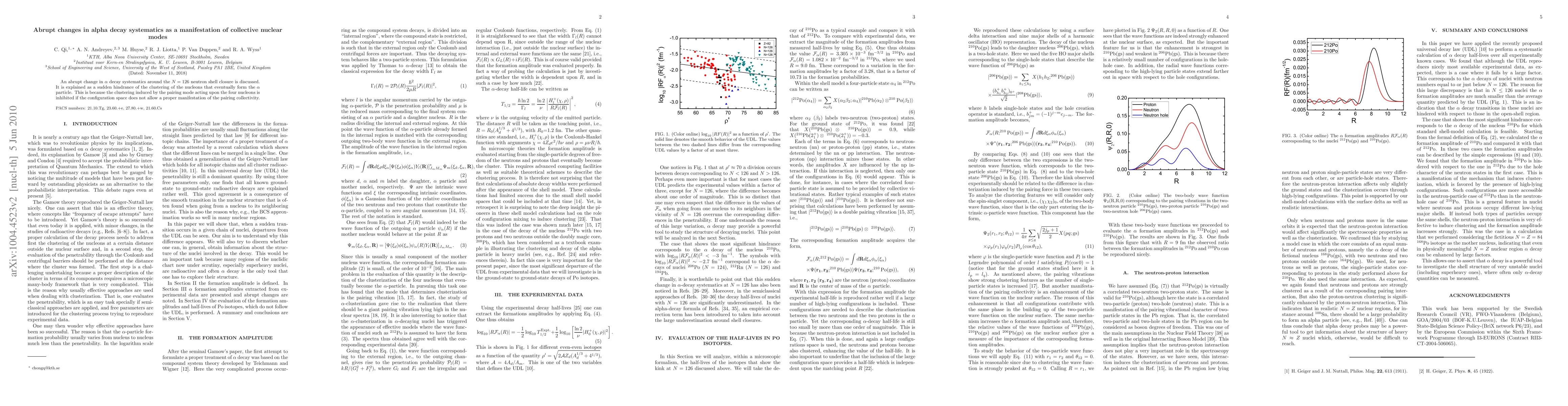Two-line summary: This paper investigates an abrupt shift in alpha decay systematics near the N=126 neutron shell closure, attributing it to the inhibition of nucleon clustering due to the suppression of pairing collectivity in the configuration space. The findings suggest a manifestation of collective nuclear modes affecting alpha decay processes.