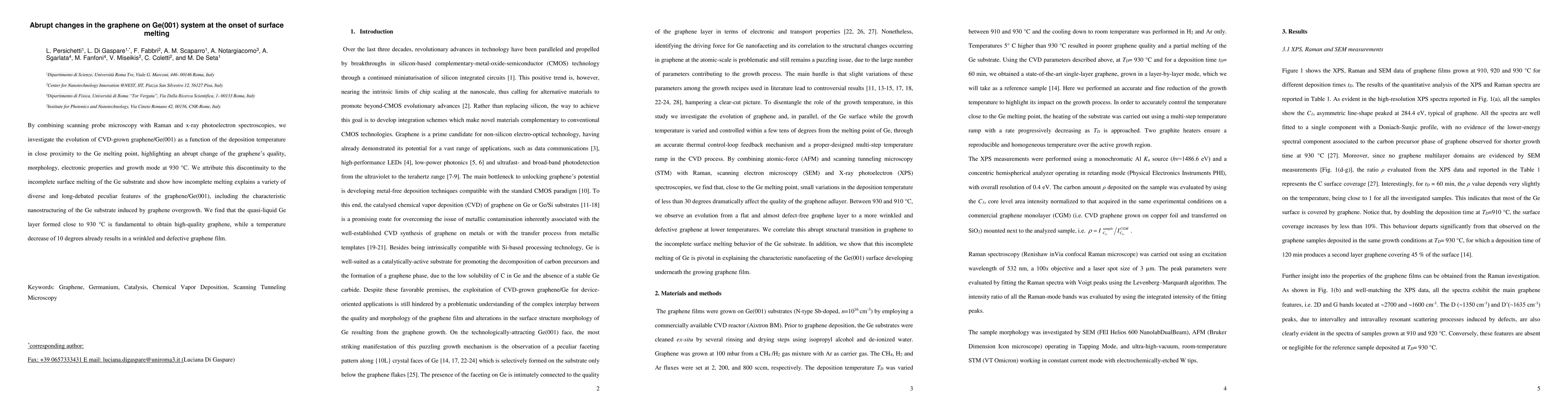 This study investigates abrupt changes in CVD-grown graphene on Ge(001) near the Ge melting point, revealing a significant transition in graphene quality and morphology at 930 degrees. The discontinuity is attributed to incomplete surface melting of the Ge substrate, which influences the graphene's electronic properties and growth mode.