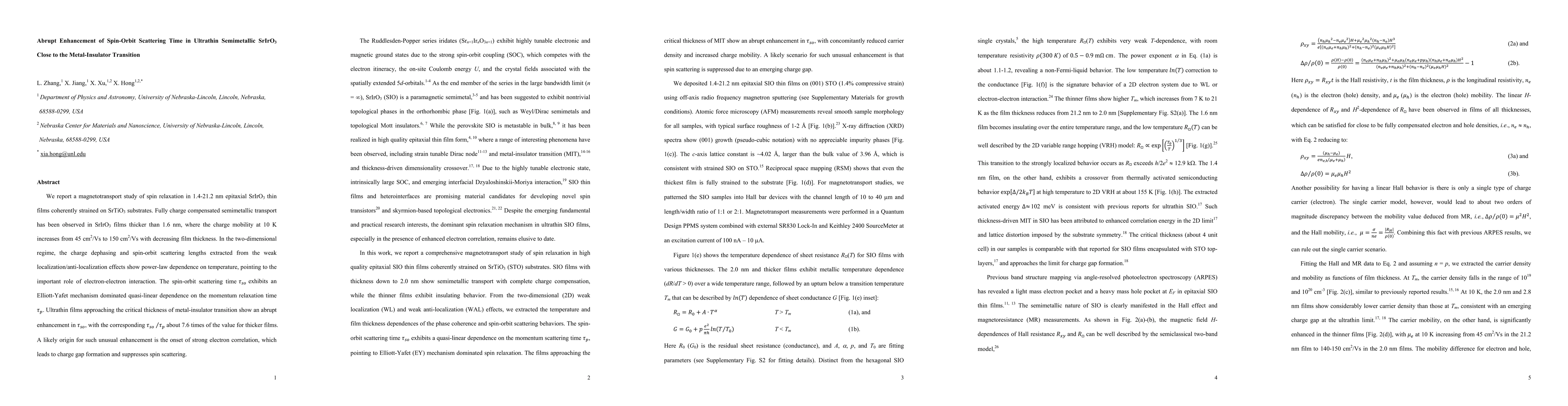 We report a magnetotransport study of spin relaxation in 1.4-21.2 nm epitaxial SrIrO$_3$ thin films coherently strained on SrTiO$_3$ substrates. Fully charge compensated semimetallic transport has been observed in SrIrO$_3$ films thicker than 1.6 nm, where the charge mobility at 10 K increases from 45 cm$^2$/Vs to 150 cm$^2$/Vs with decreasing film thickness. In the two-dimensional regime, the charge dephasing and spin-orbit scattering lengths extracted from the weak localization/anti-localization effects show power-law dependence on temperature, pointing to the important role of electron-electron interaction. The spin-orbit scattering time $\tau_\text{so}$ exhibits an Elliott-Yafet mechanism dominated quasi-linear dependence on the momentum relaxation time $\tau_\text{p}$. Ultrathin films approaching the critical thickness of metal-insulator transition show an abrupt enhancement in $\tau_\text{so}$, with the corresponding $\tau_\text{so}/\tau_\text{p}$ about 7.6 times of the value for thicker films. A likely origin for such unusual enhancement is the onset of strong electron correlation, which leads to charge gap formation and suppresses spin scattering.