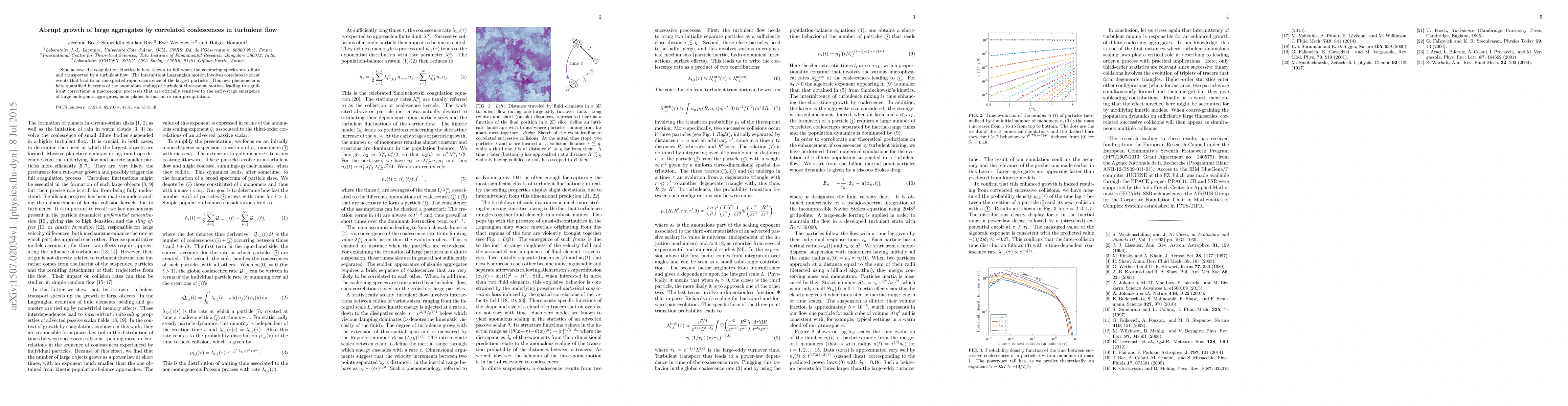 Smoluchowski's coagulation kinetics is here shown to fail when the coalescing species are dilute and transported by a turbulent flow. The intermittent Lagrangian motion involves correlated violent events that lead to an unexpected rapid occurrence of the largest particles. This new phenomena is here quantified in terms of the anomalous scaling of turbulent three-point motion, leading to significant corrections in macroscopic processes that are critically sensitive to the early-stage emergence of large embryonic aggregates, as in planet formation or rain precipitation.