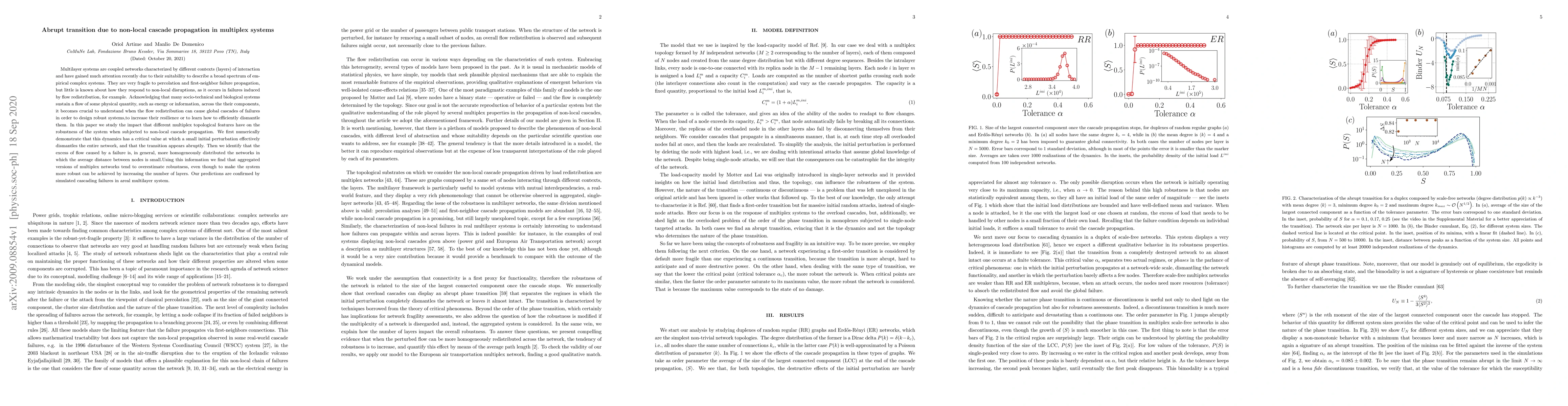 A study on multiplex systems found that non-local cascade propagation can cause abrupt transitions to failure when a small initial perturbation is introduced, with the transition becoming more unstable as the average distance between nodes increases.