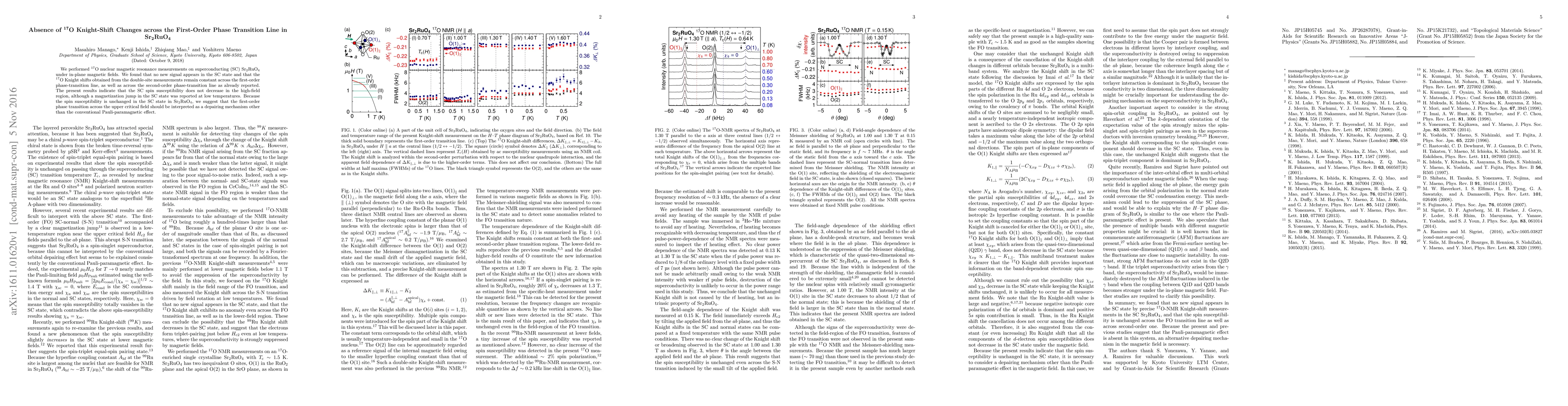 This paper reports that $^{17}$O nuclear magnetic resonance measurements in Sr$_2$RuO$_4$ show no change in $^{17}$O Knight shifts across first-order and second-order phase transitions, suggesting that superconducting spin susceptibility remains constant. The findings suggest a non-conventional depairing mechanism for the first-order transition.