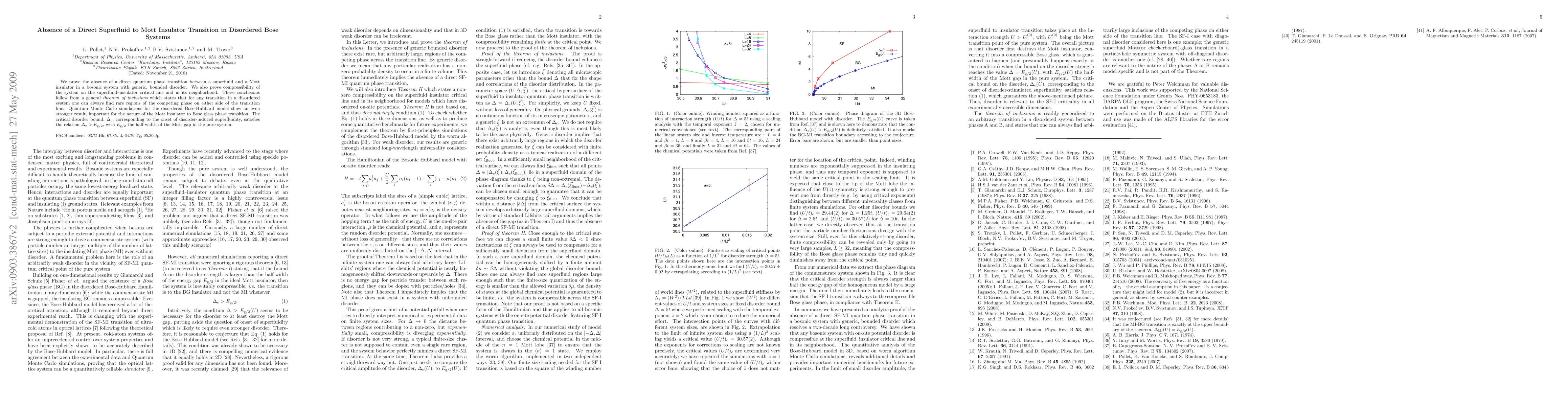 This paper demonstrates the absence of a direct superfluid to Mott insulator quantum phase transition in disordered bosonic systems, proving the compressibility near the critical line. Quantum Monte Carlo simulations reveal that the critical disorder bound for disorder-induced superfluidity exceeds half the width of the Mott gap in the pure system.