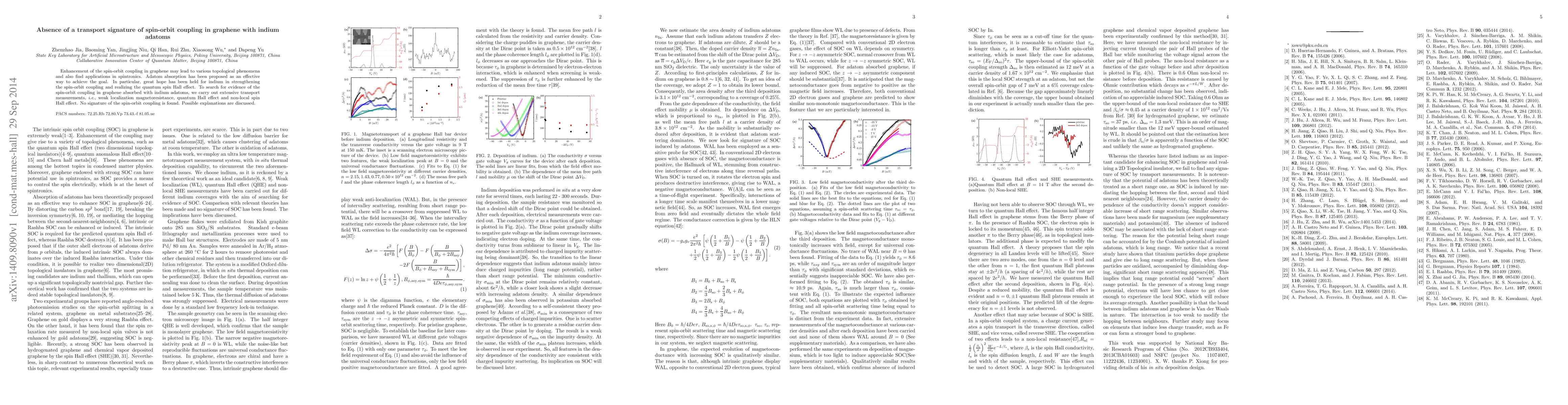 The study investigates the effect of indium adatoms on spin-orbit coupling in graphene through transport measurements but finds no evidence of enhanced spin-orbit coupling. Possible reasons for the absence of a transport signature are explored.