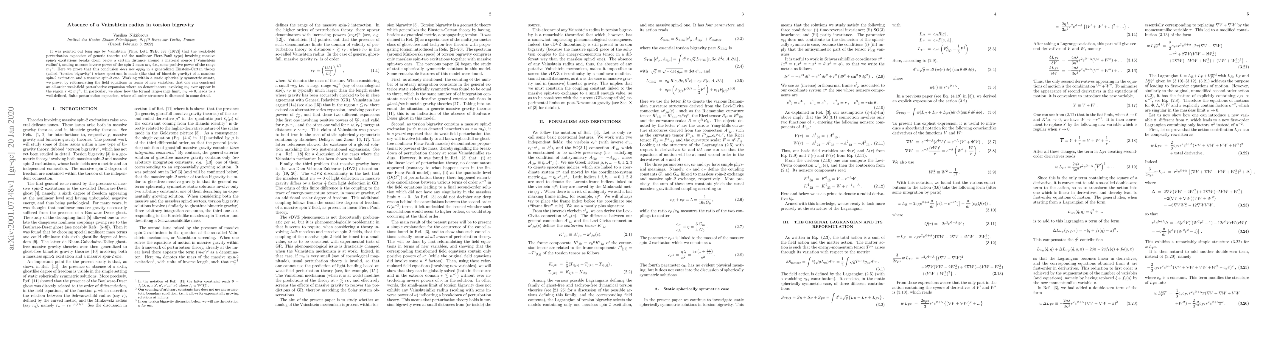 It was pointed out long ago by Vainshtein [Phys. Lett. 39B, 393 (1972)] that the weak-field perturbation expansion of generic theories (of the nonlinear Fierz-Pauli type) involving massive spin-2 excitations breaks down below a certain distance around a material source ("Vainshtein radius"), scaling as some inverse power of the spin-2 mass $m_2$, i.e., some positive power of the range $m_2^{-1}$. Here we prove that this conclusion does not apply in a generalized Einstein-Cartan theory (called "torsion bigravity") whose spectrum is made (like that of bimetric gravity) of a massless spin-2 excitation and a massive spin-2 one. Working within a static spherically symmetric ansatz, we prove, by reformulating the field equations in terms of new variables, that one can construct an all-order weak-field perturbative expansion where no denominators involving $m_2$ ever appear in the region $r \ll m_2^{-1}$. In particular, we show how the formal large-range limit, $m_2 \to 0$, leads to a well-defined, finite perturbation expansion, whose all-order structure is discussed in some detail.