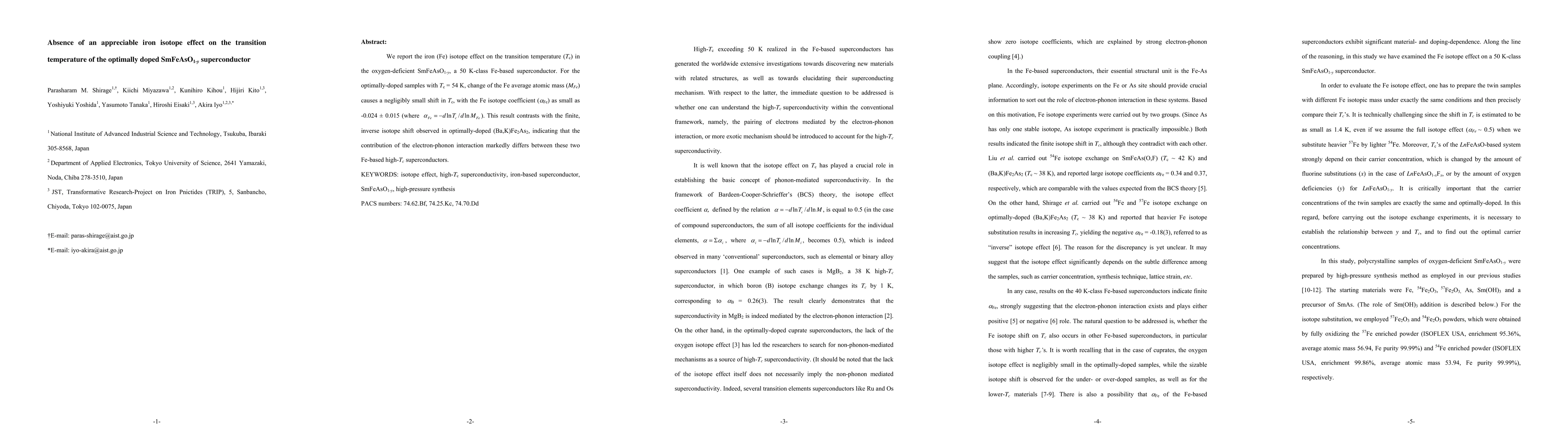 This study finds no significant iron isotope effect on the transition temperature of optimally doped SmFeAsO_{1-y}, a 50 K Fe-based superconductor, with an extremely small Fe isotope coefficient of -0.024 ± 0.015, contrasting with the inverse isotope effect seen in (Ba,K)Fe2As2. This suggests differing electron-phonon interaction contributions in these Fe-based superconductors.