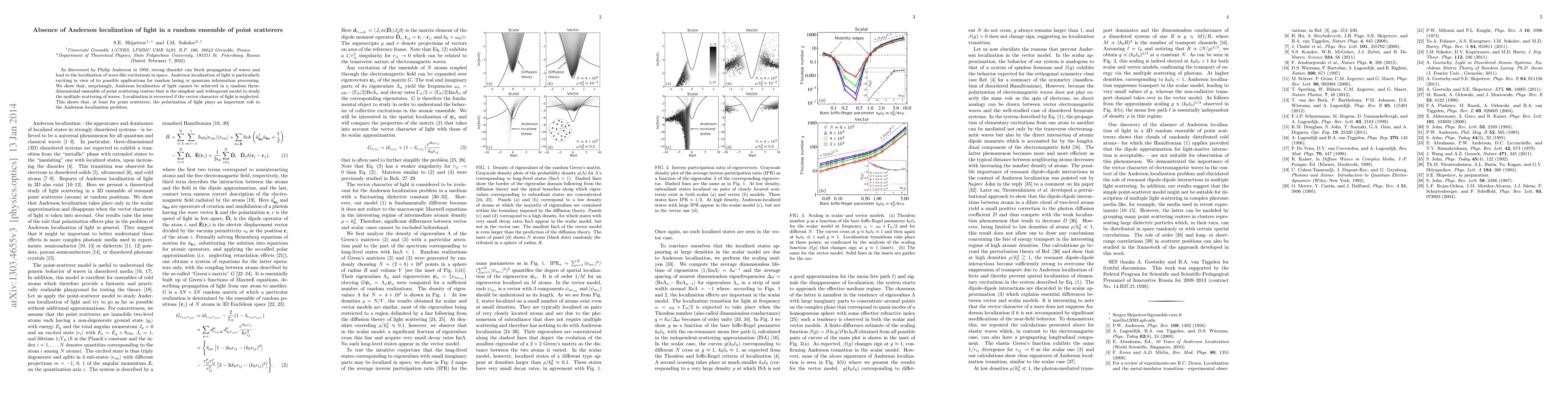 This research demonstrates that Anderson localization of light fails in a random three-dimensional ensemble of point scatterers, contrary to expectations based on strong disorder theory. Polarization of light is crucial in this phenomenon, as localization only returns when the vector nature of light is disregarded.