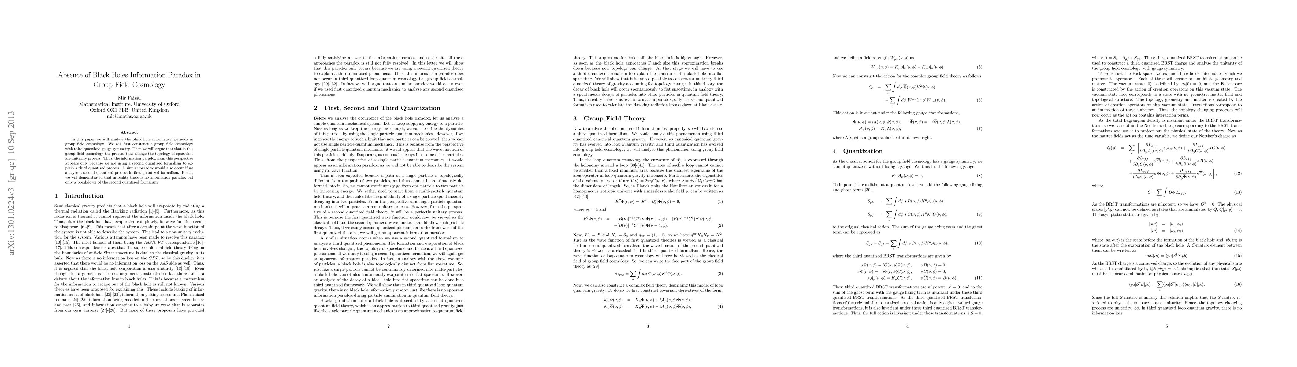 A new cosmology theory called group field theory resolves the black hole information paradox, suggesting that the apparent loss of information is a flaw in second-quantized formalism rather than an inherent property of spacetime.