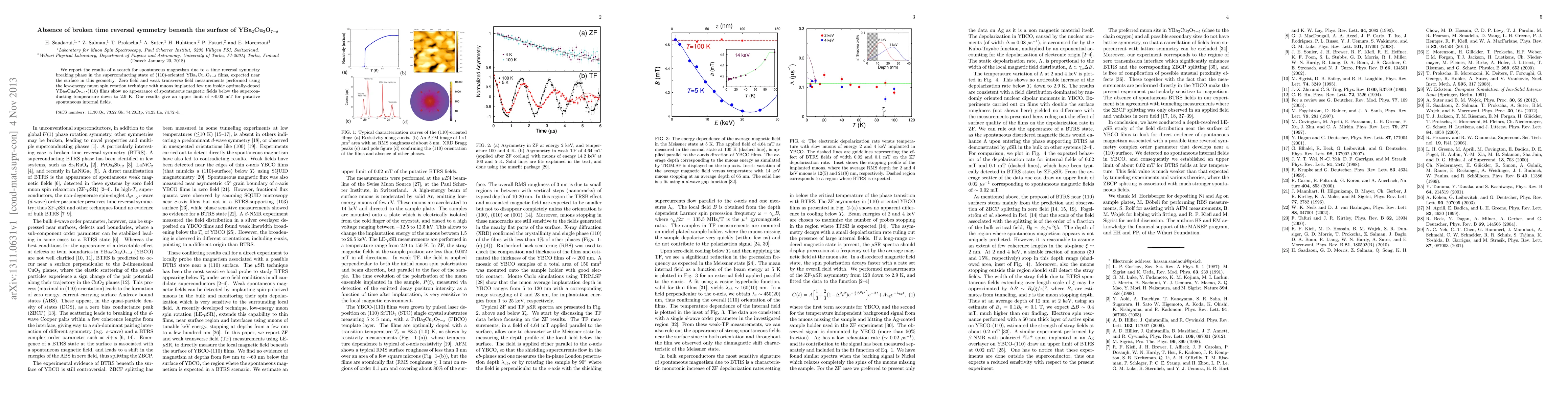 This study uses low-energy muon spin rotation to investigate (110)-oriented YBCO films for spontaneous magnetism due to time reversal symmetry breaking in the superconducting state. No spontaneous magnetic fields were detected below the superconducting temperature, setting an upper limit of ~0.02 mT for any such internal fields.