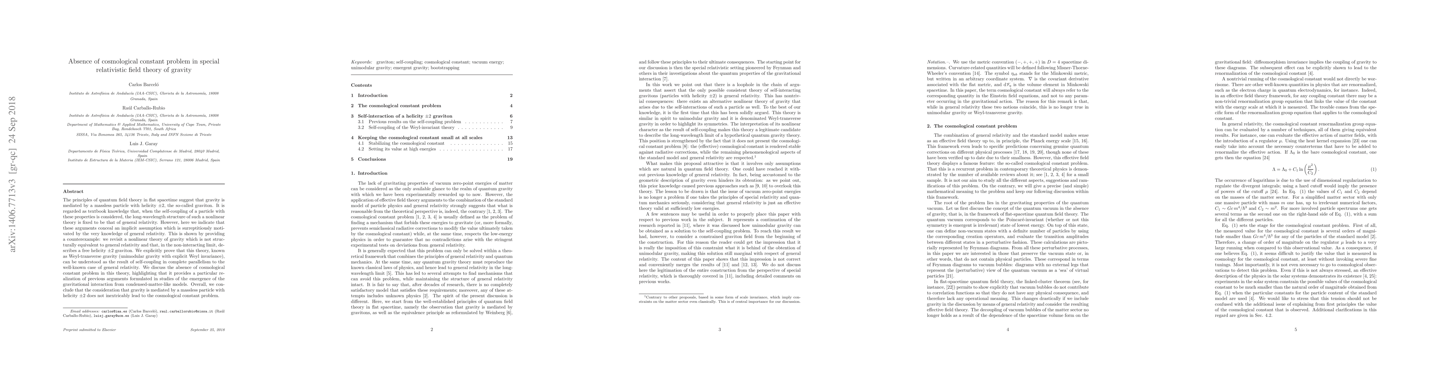 The principles of quantum field theory in flat spacetime suggest that gravity is mediated by a massless particle with helicity $\pm2$, the so-called graviton. It is regarded as textbook knowledge that, when the self-coupling of a particle with these properties is considered, the long-wavelength structure of such a nonlinear theory is fixed to be that of general relativity. However, here we show that these arguments conceal an implicit assumption which is surreptitiously motivated by the very knowledge of general relativity. This is shown by providing a counterexample: we revisit a nonlinear theory of gravity which is not structurally equivalent to general relativity and that, in the non-interacting limit, describes a free helicity $\pm2$ graviton. We explicitly prove that this theory can be understood as the result of self-coupling in complete parallelism to the well-known case of general relativity. The assumption which was seen as natural in previous analyses but biased the result is pointed out. This special relativistic field theory of gravity implies the decoupling of vacuum zero-point energies of matter and passes all the known experimental tests in gravitation.