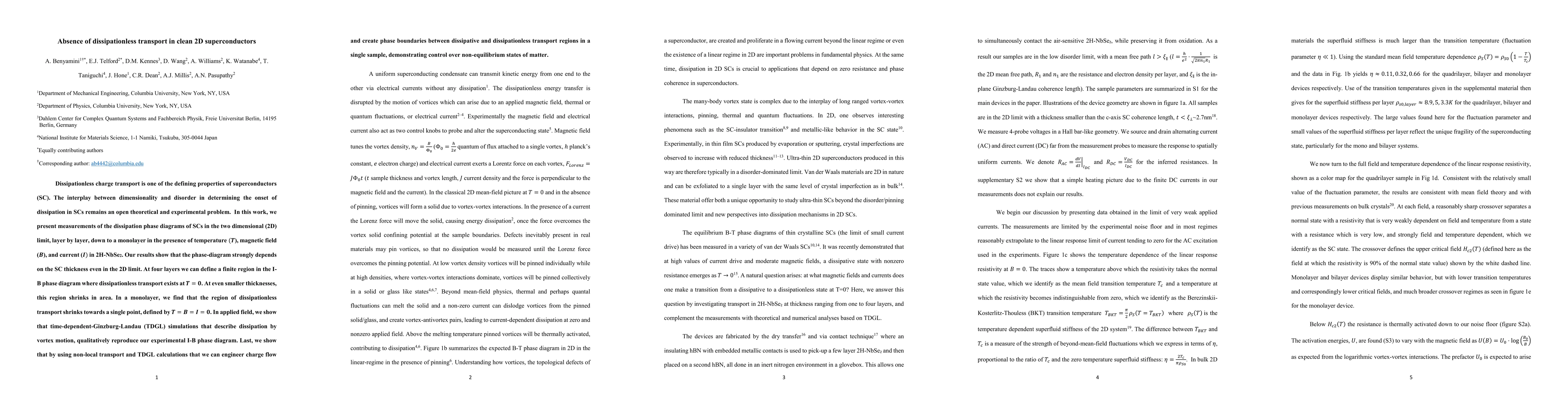 Dissipationless charge transport is one of the defining properties of superconductors (SC). The interplay between dimensionality and disorder in determining the onset of dissipation in SCs remains an open theoretical and experimental problem. In this work, we present measurements of the dissipation phase diagrams of SCs in the two dimensional (2D) limit, layer by layer, down to a monolayer in the presence of temperature (T), magnetic field (B), and current (I) in 2H-NbSe2. Our results show that the phase-diagram strongly depends on the SC thickness even in the 2D limit. At four layers we can define a finite region in the I-B phase diagram where dissipationless transport exists at T=0. At even smaller thicknesses, this region shrinks in area. In a monolayer, we find that the region of dissipationless transport shrinks towards a single point, defined by T=B=I=0. In applied field, we show that time-dependent-Ginzburg-Landau (TDGL) simulations that describe dissipation by vortex motion, qualitatively reproduce our experimental I-B phase diagram. Last, we show that by using non-local transport and TDGL calculations that we can engineer charge flow and create phase boundaries between dissipative and dissipationless transport regions in a single sample, demonstrating control over non-equilibrium states of matter.