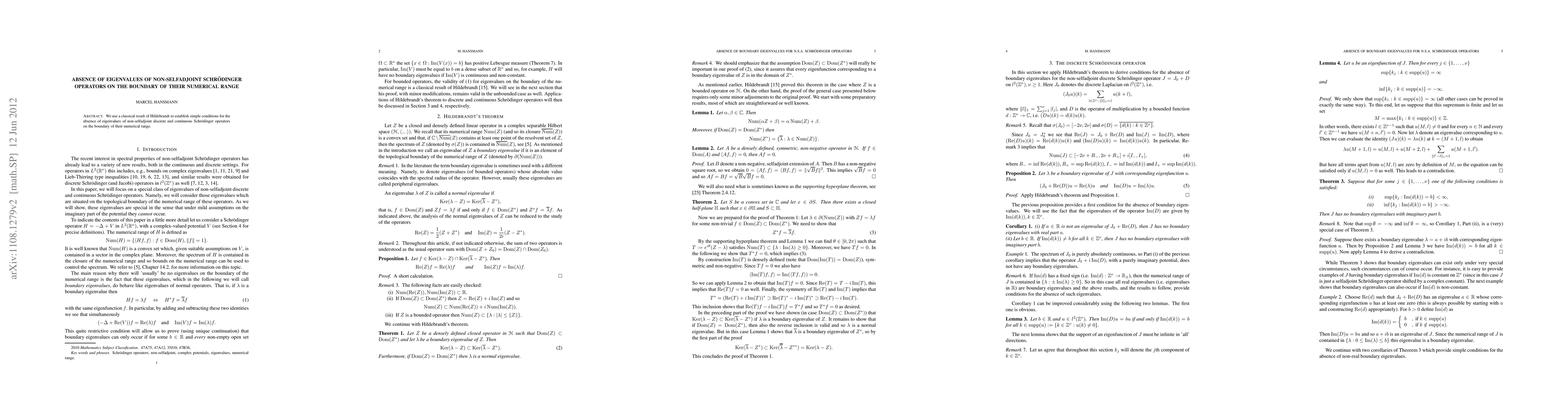 Summary: This paper leverages a classical result by Hildebrandt to provide straightforward conditions ensuring the absence of eigenvalues for non-selfadjoint Schrödinger operators, both discrete and continuous, on the boundary of their numerical range.