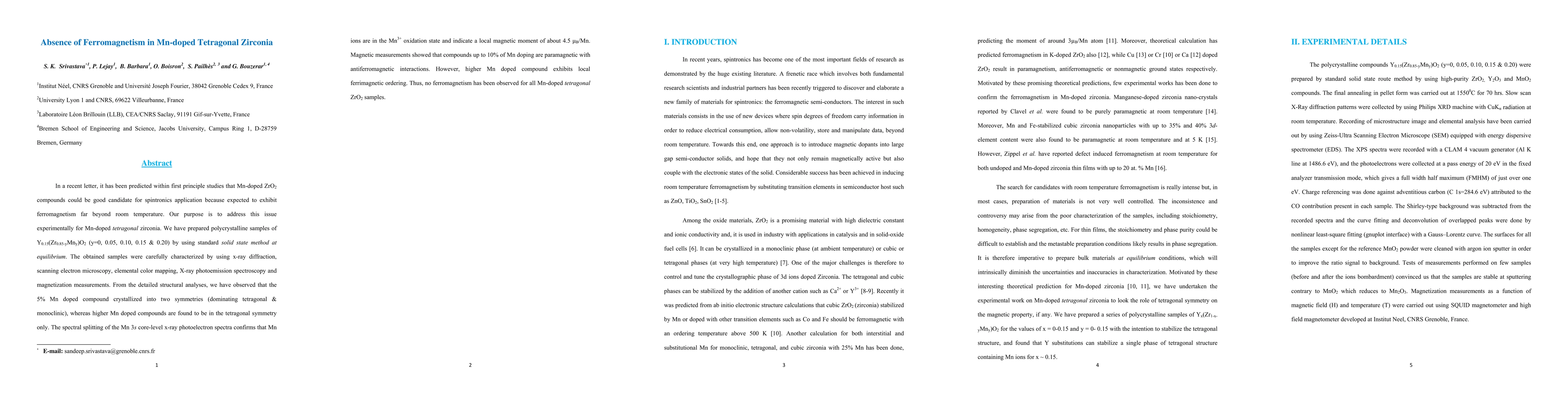 This study experimentally investigates Mn-doped tetragonal zirconia for potential spintronics applications, finding no ferromagnetism despite predicted first-principles calculations. Instead, the samples exhibited paramagnetism and antiferromagnetic interactions up to 10% Mn doping, with local ferrimagnetic ordering at higher concentrations.