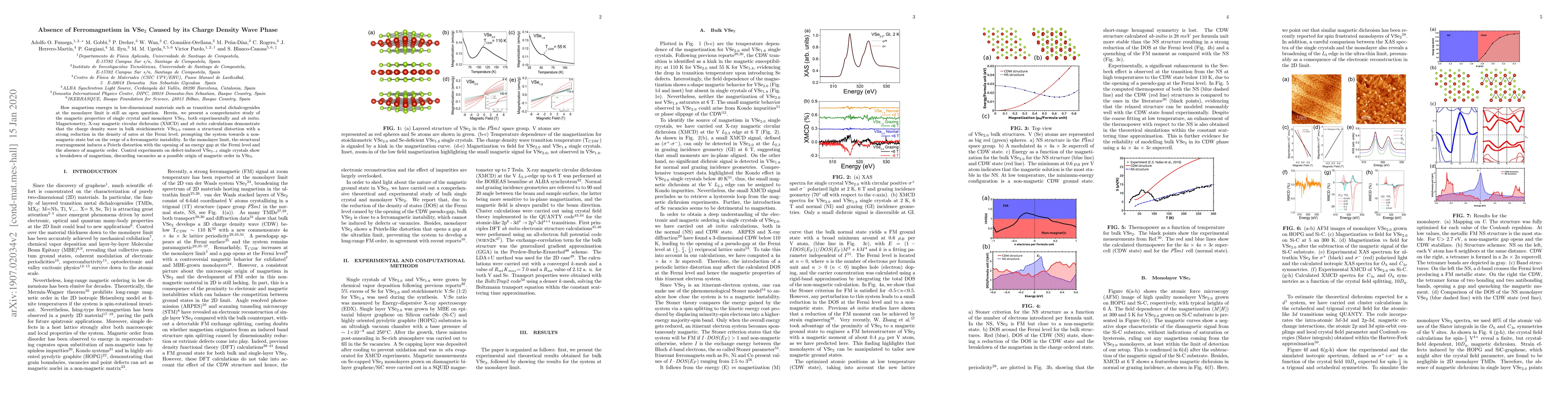 This study reveals that the absence of ferromagnetism in VSe$_2$ is due to its charge density wave phase, which reduces the density of states at the Fermi level, leading to a non-magnetic state. In monolayer VSe$_2$, a Peierls distortion opens an energy gap, further preventing magnetic order.