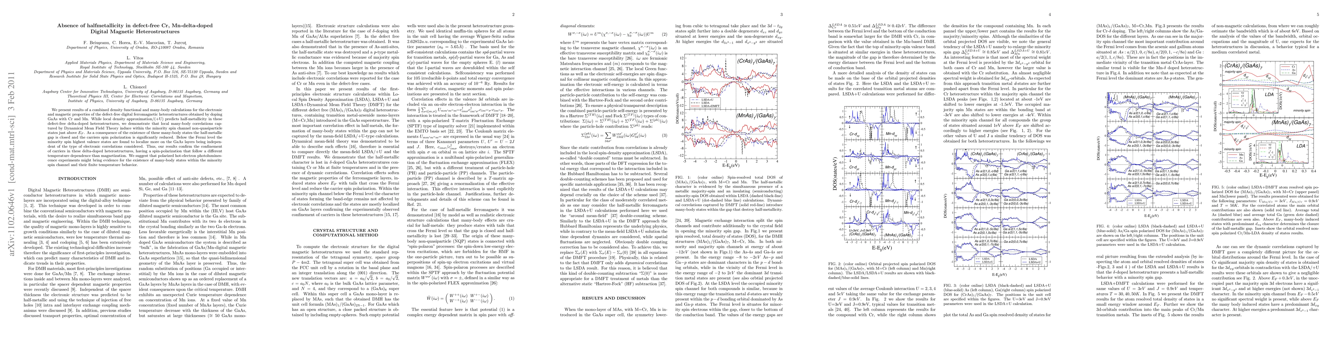 This study reveals that defect-free Cr and Mn-doped GaAs delta-magnetic heterostructures do not exhibit half-metallicity despite predictions from local density approximation. Many-body effects close the half-metallic gap and reduce spin polarization, suggesting a different temperature dependence for spin-polarization compared to magnetization.