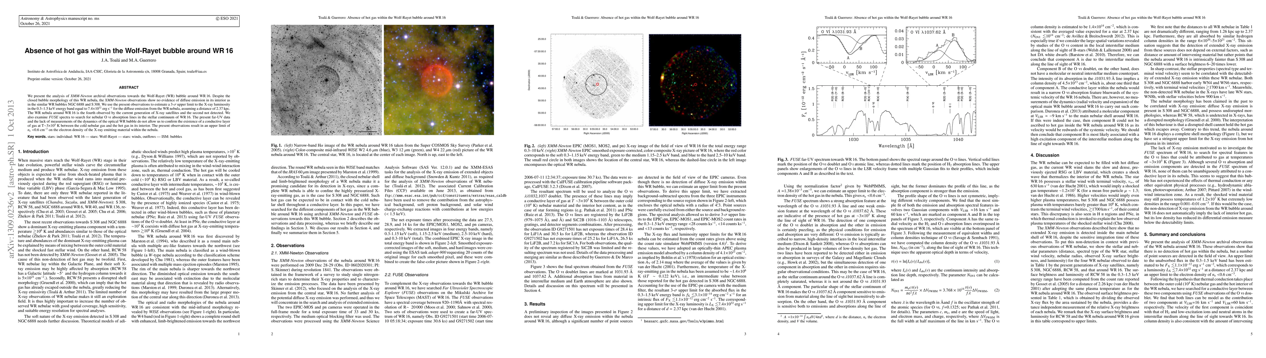 This paper analyzes XMM-Newton observations of the Wolf-Rayet bubble around WR16, finding no diffuse X-ray emission despite its closed morphology. The study sets an upper limit on the X-ray luminosity and electron density for the nebula, suggesting the absence of hot gas within the bubble.