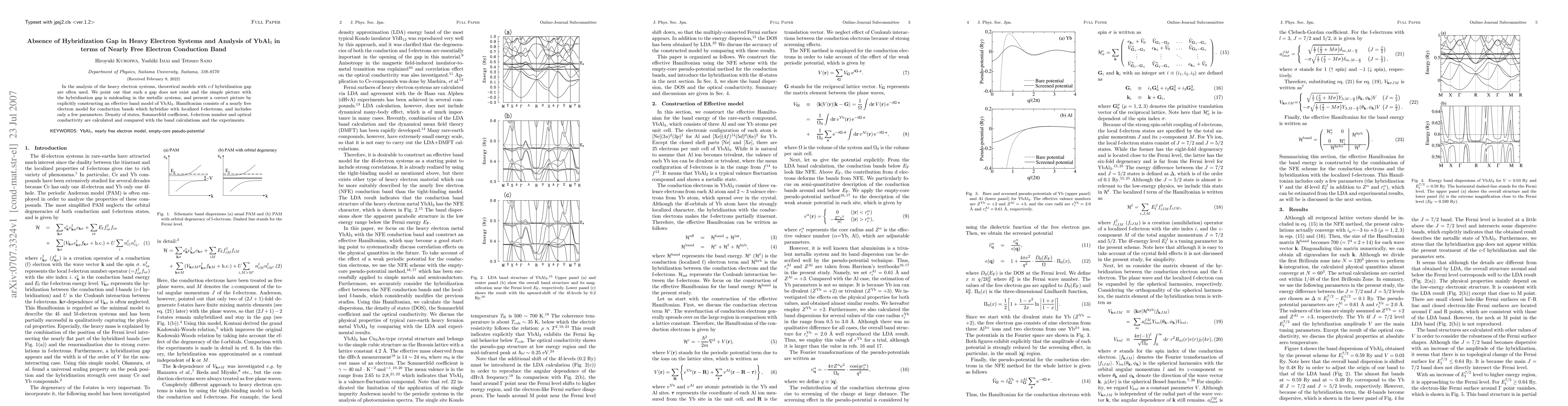 This paper argues against the existence of a hybridization gap in heavy electron systems, demonstrating that such a gap is misleading. It proposes an effective band model for YbAl_3, based on nearly free electron conduction bands hybridizing with localized f-electrons, and compares its predictions with experimental data and band calculations.