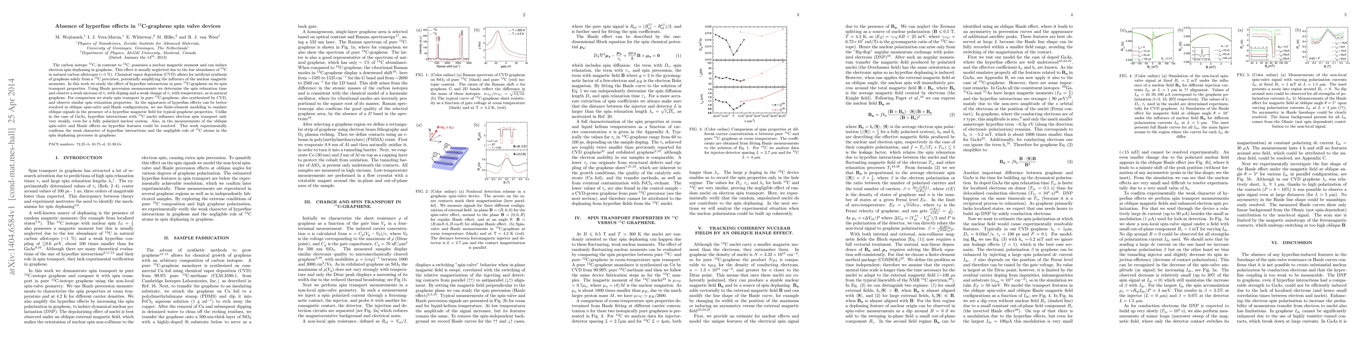 This study investigates the hyperfine effects in pure $^{13}$C-graphene synthesized via chemical vapor deposition, revealing that despite the nuclear magnetic moments of $^{13}$C, hyperfine interactions have a negligible influence on electron spin transport, as evidenced by Hanle precession measurements. The results indicate similar spin relaxation properties between $^{13}$C- and $^{12}$C-graphene, confirming the minimal role of $^{13}$C in spin dephasing processes.