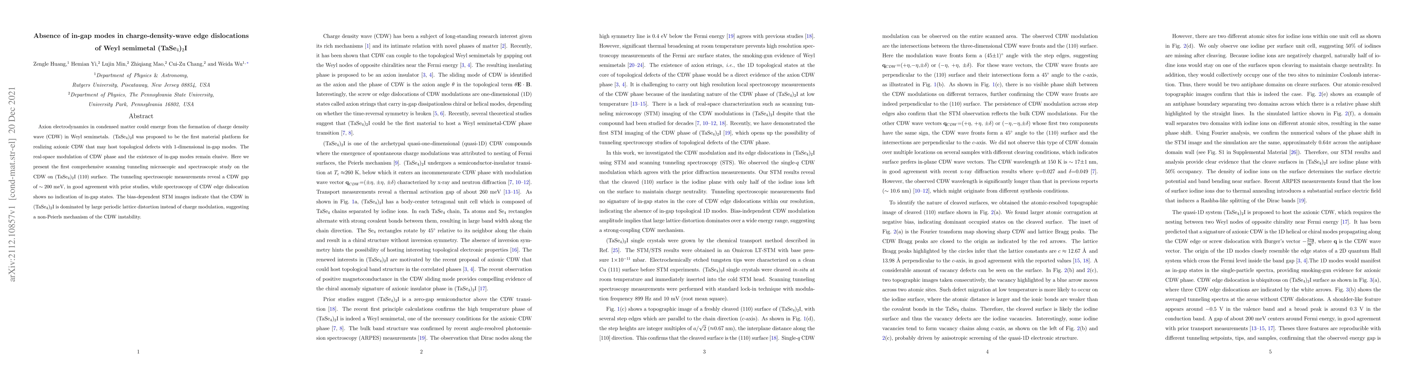 Axion electrodynamics in condensed matter could emerge from the formation of charge density waves (CDWs) in Weyl semimetals. (TaSe$_4$)$_2$I was proposed to be the first material platform for realizing axionic CDW that may host topological defects with one-dimensional in-gap modes. The real-space modulation of the CDW phase and the existence of in-gap modes remain elusive. Here, we present a comprehensive scanning tunneling microscopic and spectroscopic study of a CDW on a (TaSe$_4$)$_2$I (110) surface. The tunneling spectroscopic measurements reveal a CDW gap of $\sim 200$ meV, in good agreement with prior studies, while the spectroscopy of CDW edge dislocation shows no indication of in-gap states. The bias-dependent scanning tunneling microscopy images indicate that the CDW in(TaSe$_4$)$_2$I is dominated by a large periodic lattice distortion instead of charge modulation, suggesting a non-Peierls mechanism of the CDW instability.