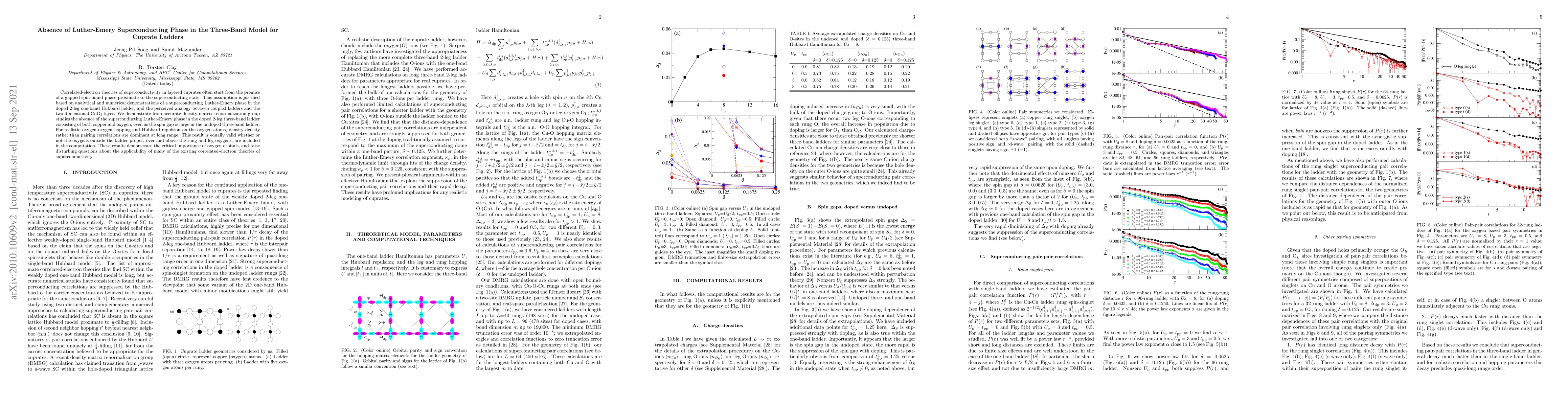 Correlated-electron theories of superconductivity in layered cuprates often start from the premise of a gapped spin-liquid phase proximate to the superconducting state. This assumption is justified based on analytical and numerical demonstrations of a superconducting Luther-Emery phase in the doped 2-leg one-band Hubbard ladder, and the perceived analogy between coupled ladders and the two dimensional CuO2 layer. We demonstrate from accurate density matrix renormalization group studies the absence of the superconducting Luther-Emery phase in the doped 2-leg three-band ladder consisting of both copper and oxygen, even as the spin gap is large in the undoped three-band ladder. For realistic oxygen-oxygen hopping and Hubbard repulsion on the oxygen atoms, density-density rather than pairing correlations are dominant at long range. This result is equally valid whether or not the oxygens outside the ladder proper, over and above the rung and leg oxygens, are included in the computation. These results demonstrate the critical importance of oxygen orbitals, and raise disturbing questions about the applicability of many of the existing correlated-electron theories of superconductivity.